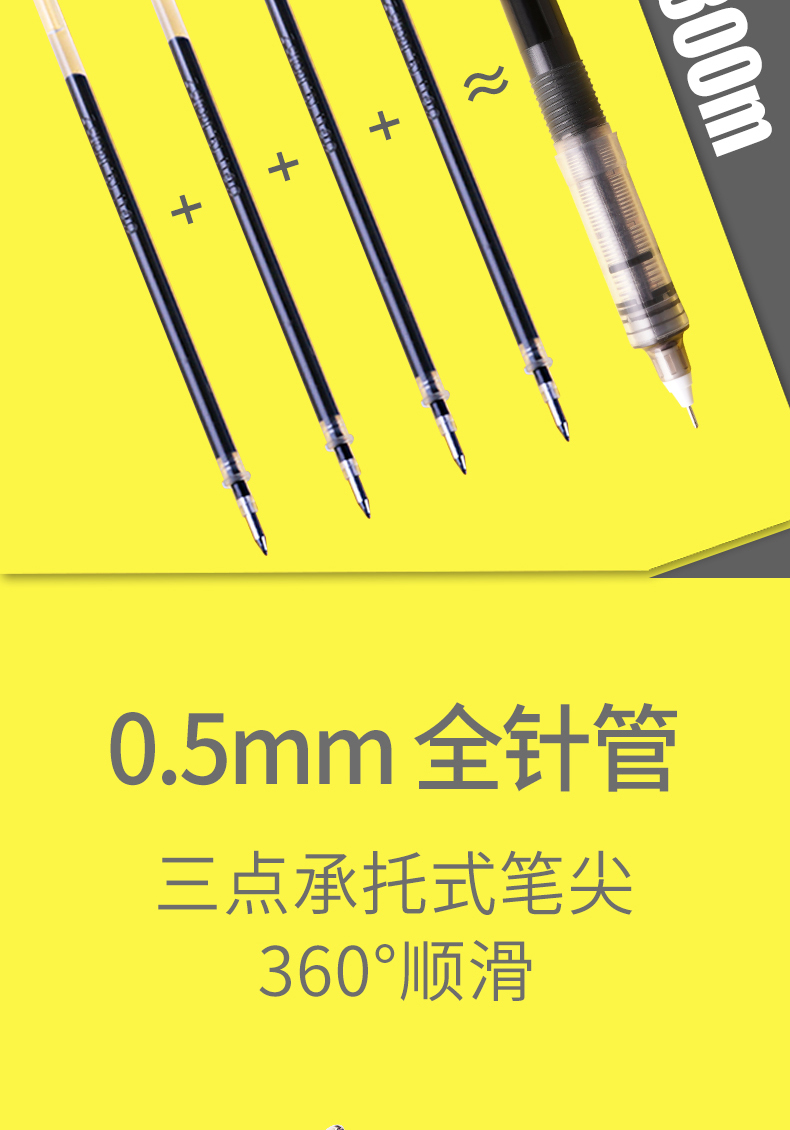 博酷0.5mm清新范可替芯走珠笔针管型直液式性笔速干签字笔