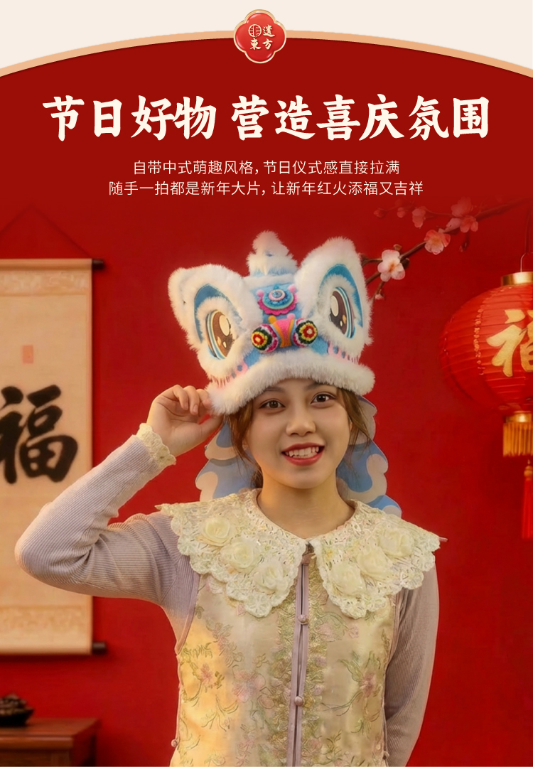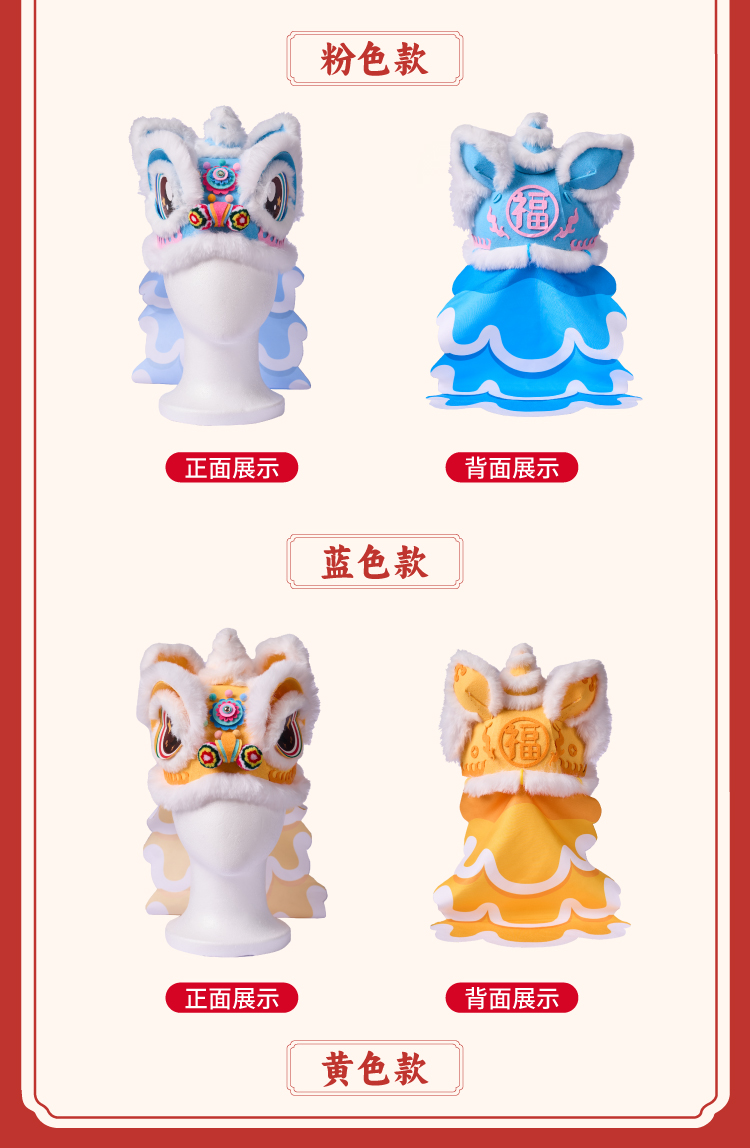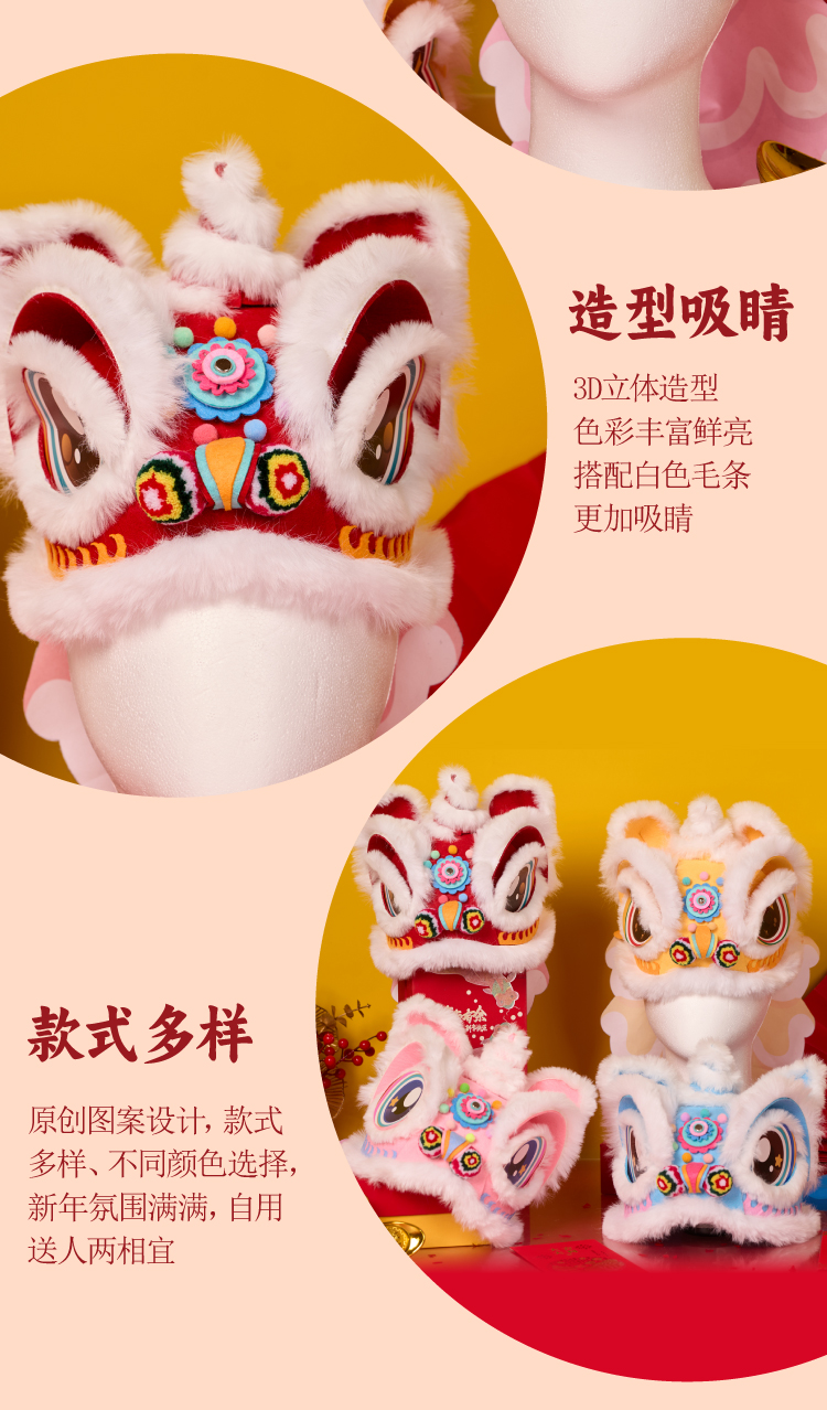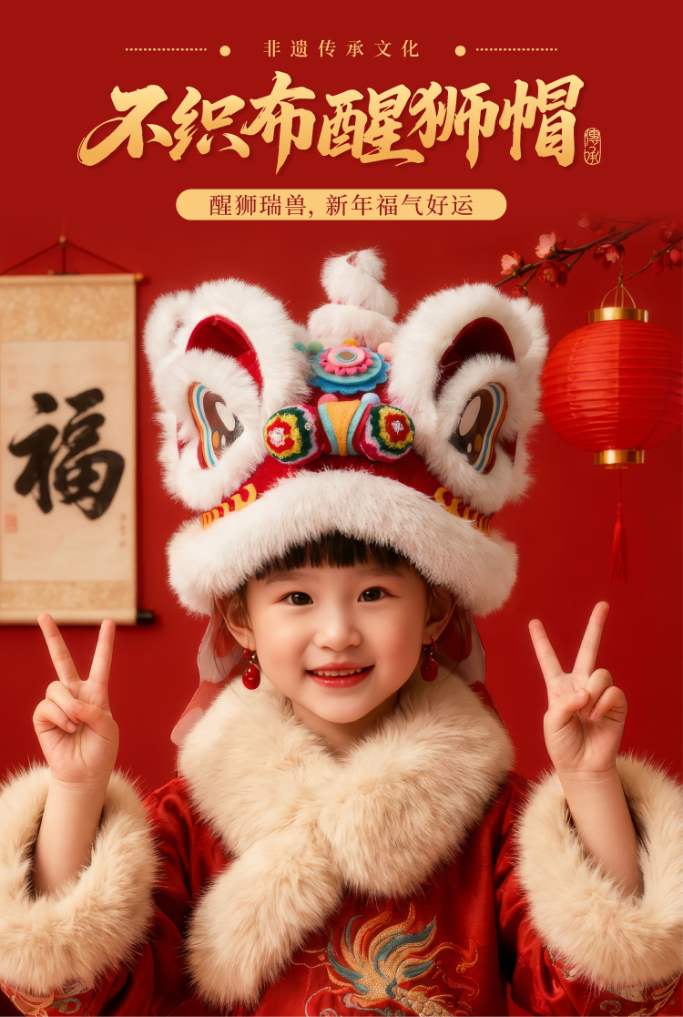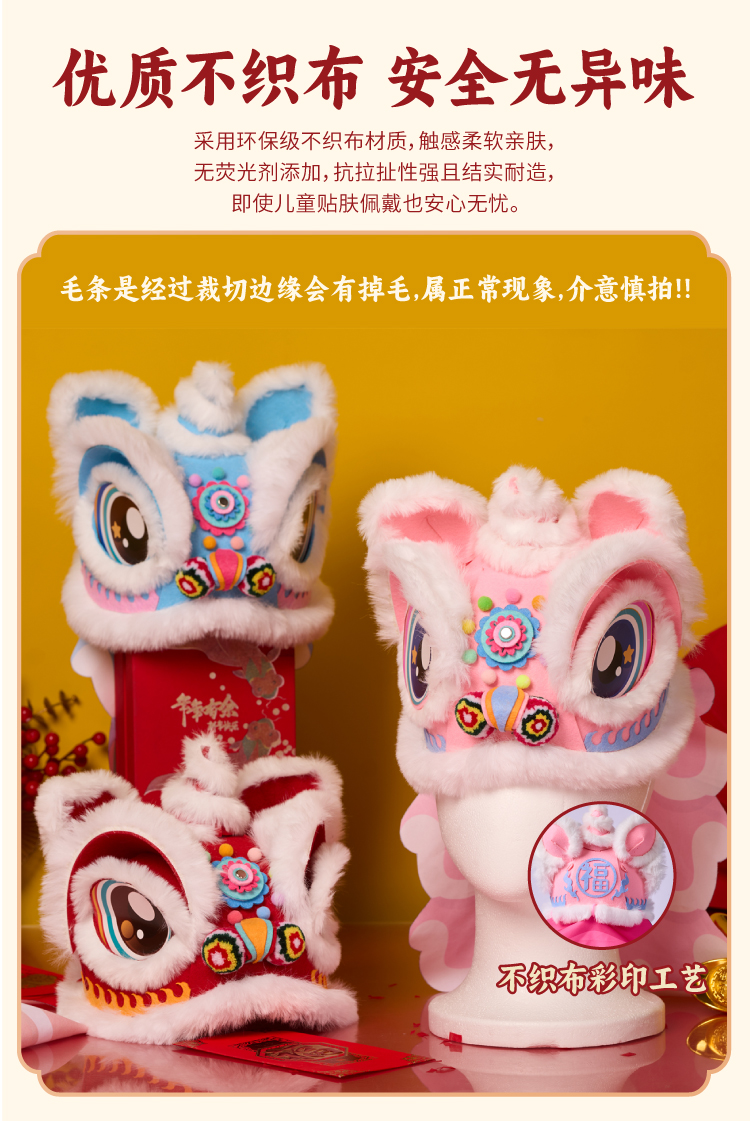 新年春节元旦马年不织布醒狮帽子手工diy儿童制作材料幼儿园头饰