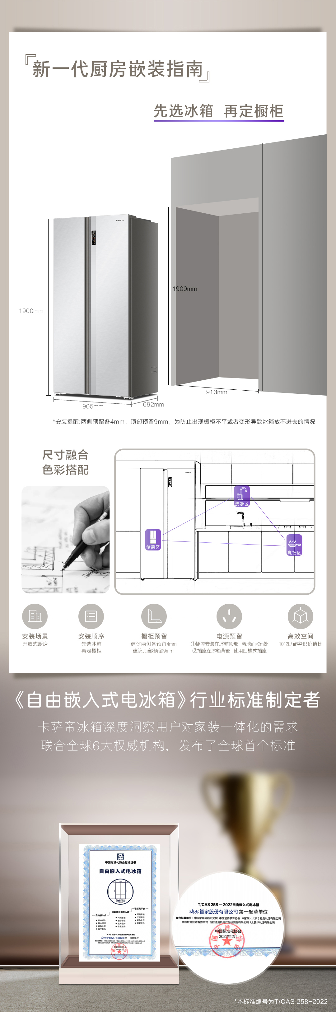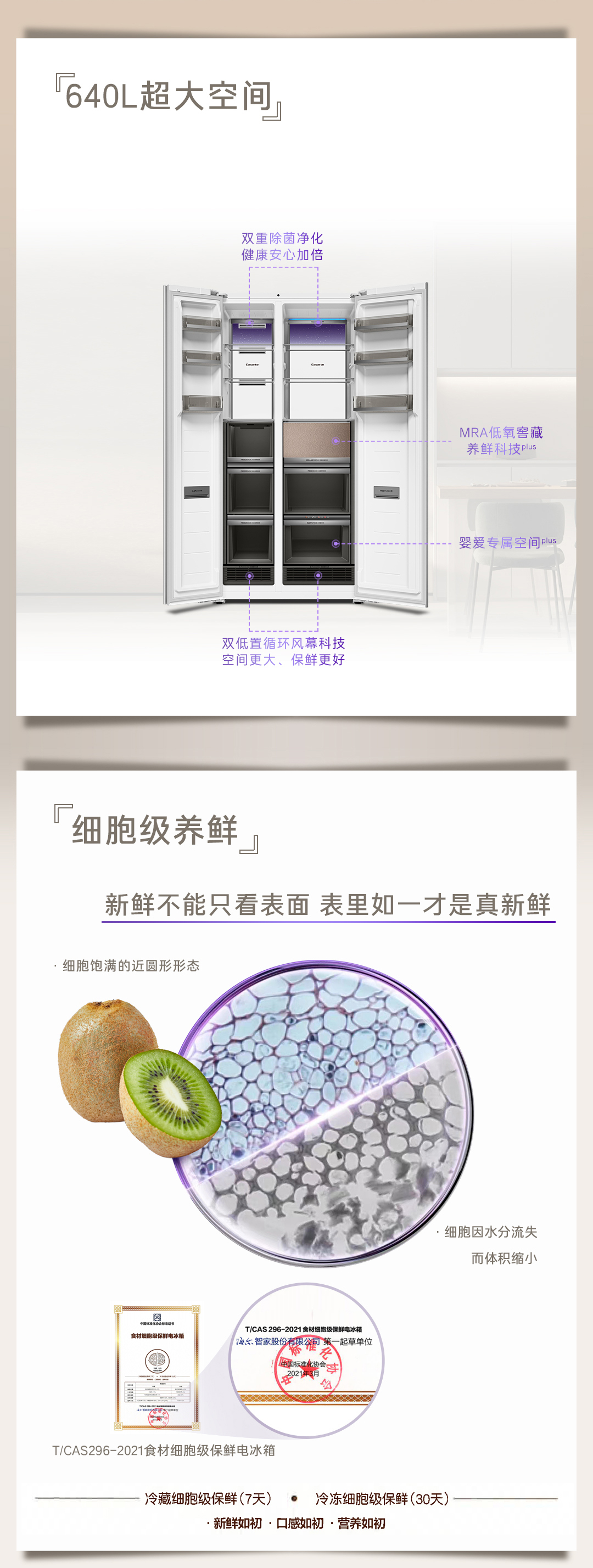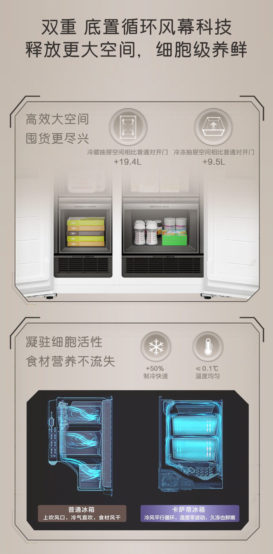 卡萨帝冰箱600L对开门大容量 零距离自由嵌入式\MRA控氧保鲜\婴爱空间(珍品、母婴、 0°、软冷冻)\智慧动态杀菌净化\人感\智能WIFI