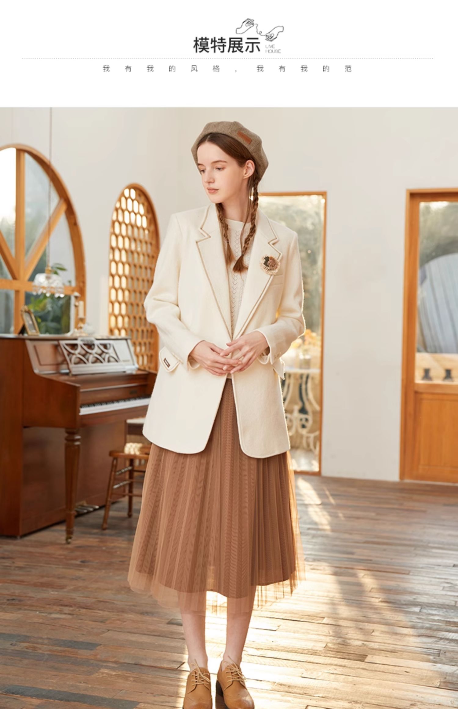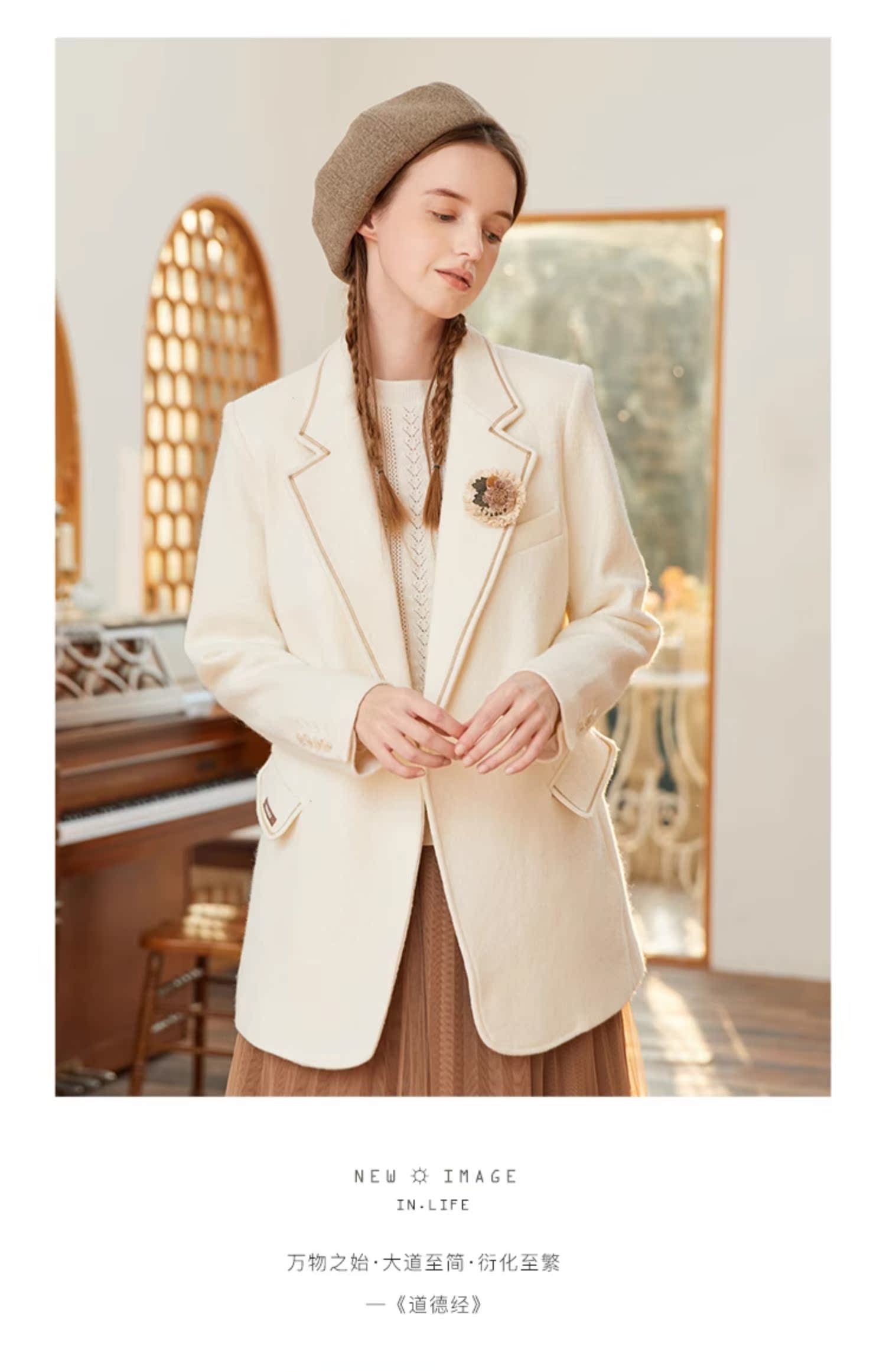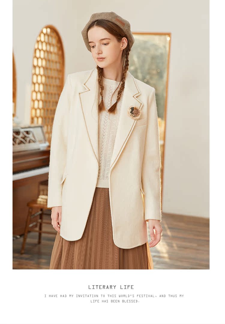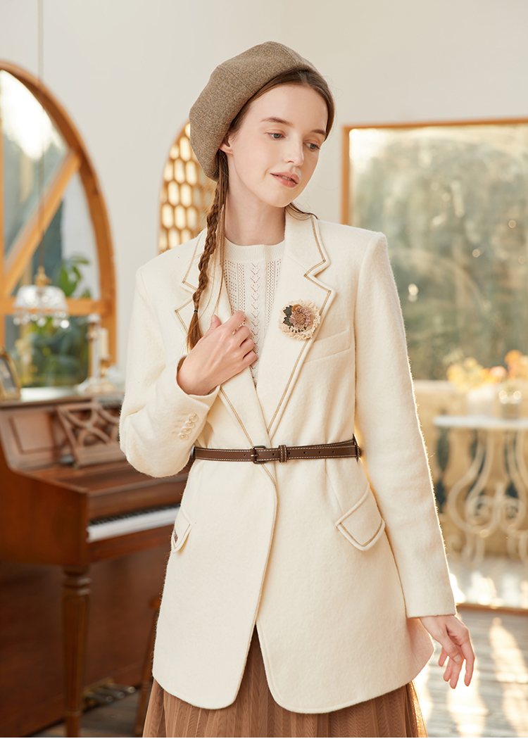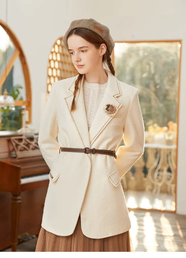 Famecoco范可儿羊毛西装外套女士冬季修身气质通勤小众西服F228AW007