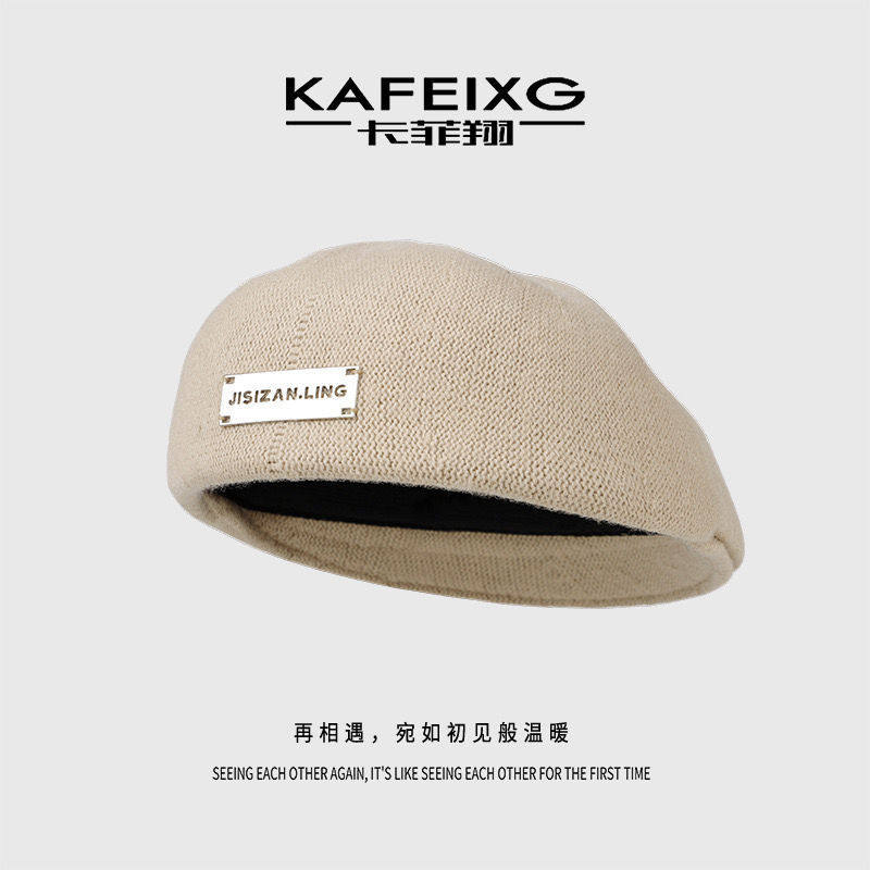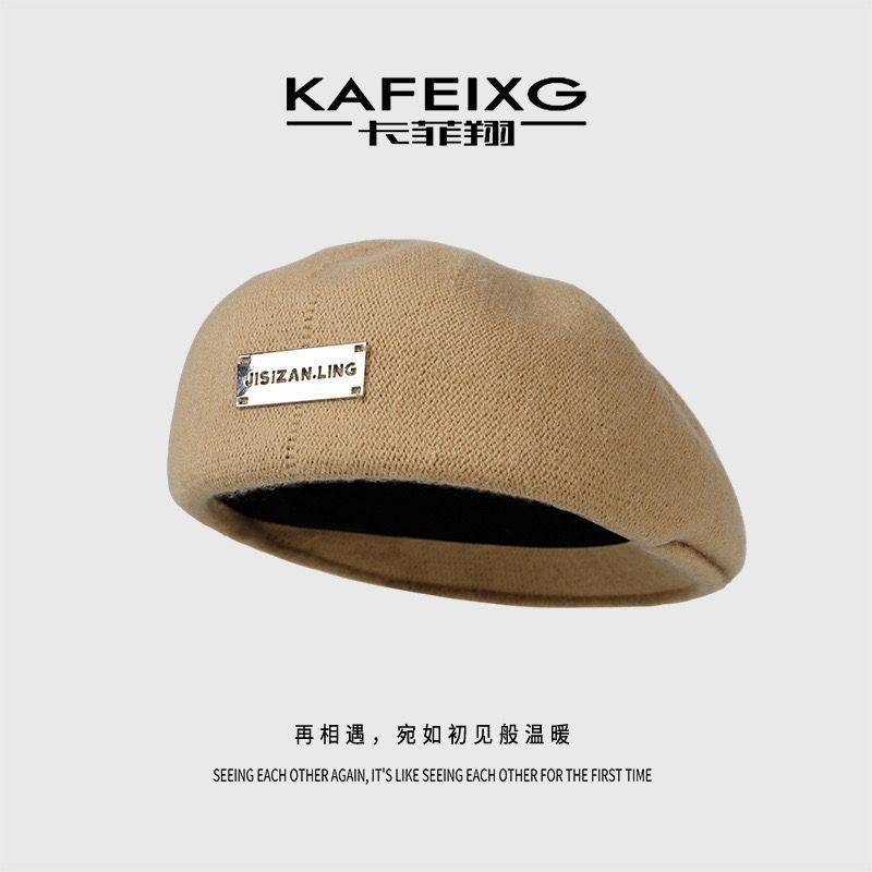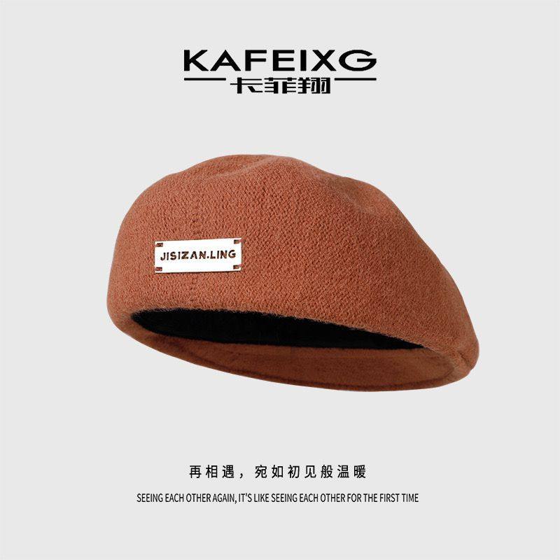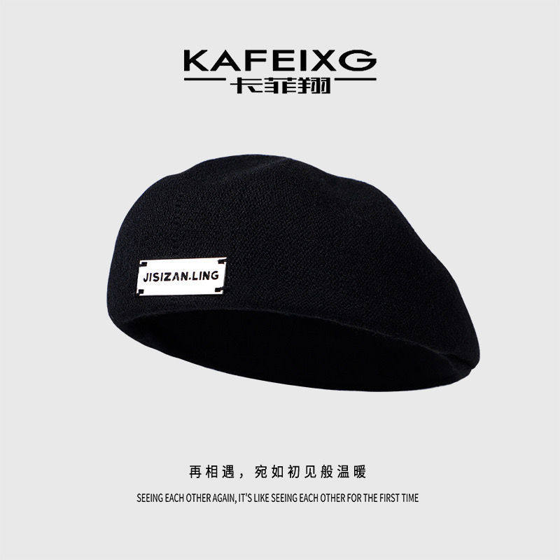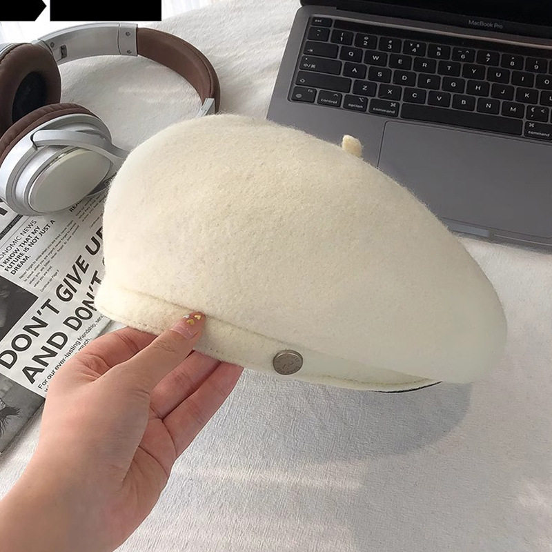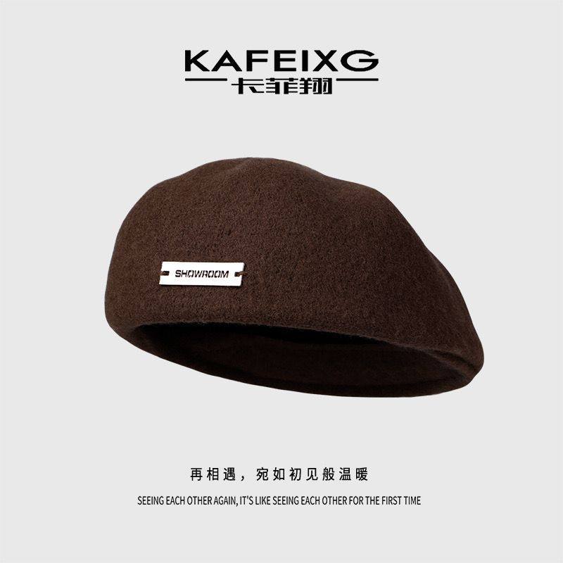 大头围黑色贝雷帽女春秋新款显脸小反戴前进帽秋冬羊毛呢画家帽子