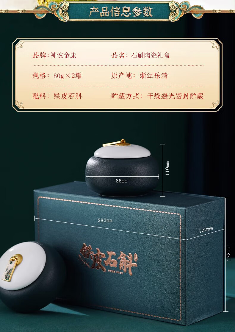 【礼盒】神农金康 铁皮石斛陶瓷双罐礼盒160g 新中式滋补礼 原生态真滋补 喝护家人健康