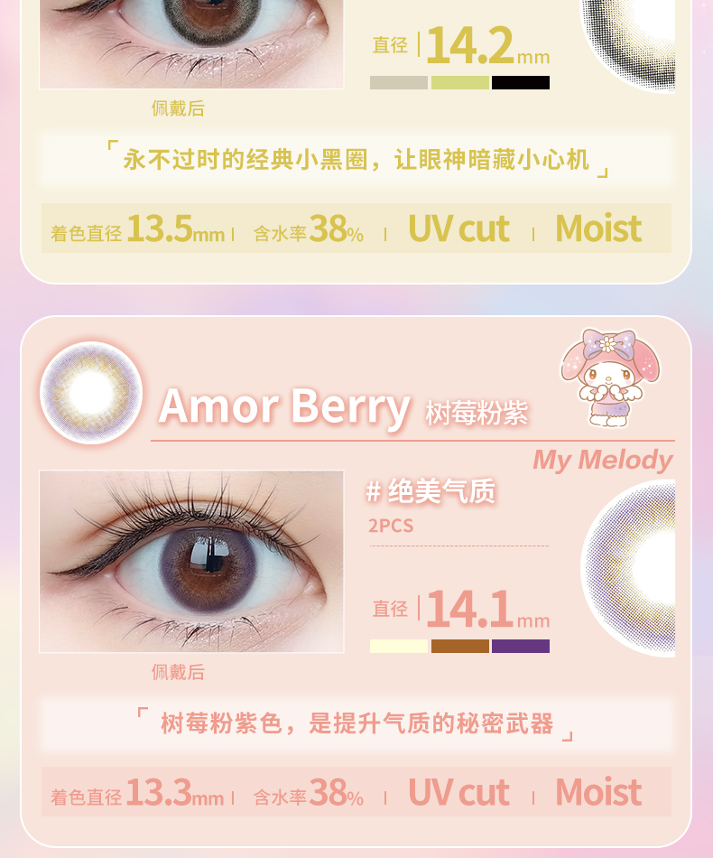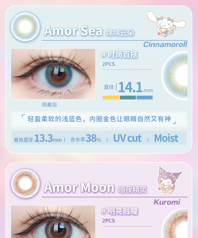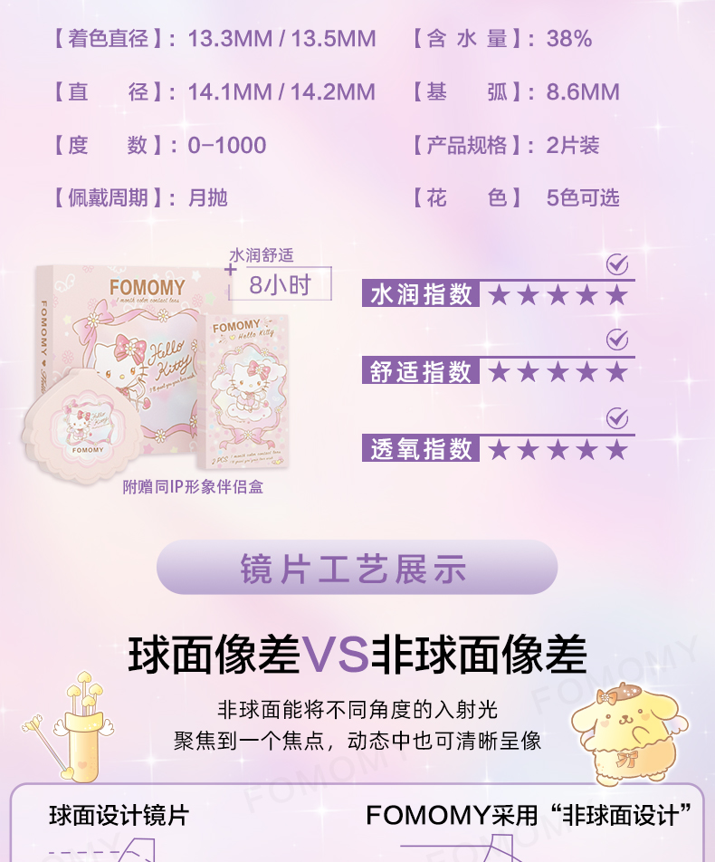 「上海保税仓发货」 FOMOMY 三丽鸥联名款 美瞳月抛 2片装
