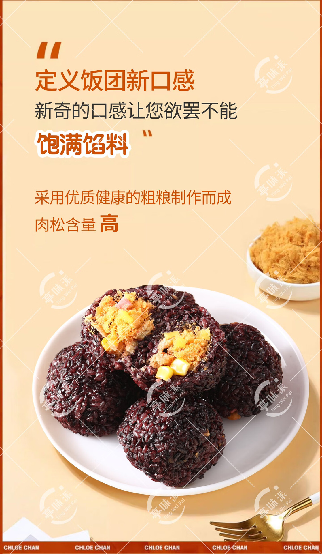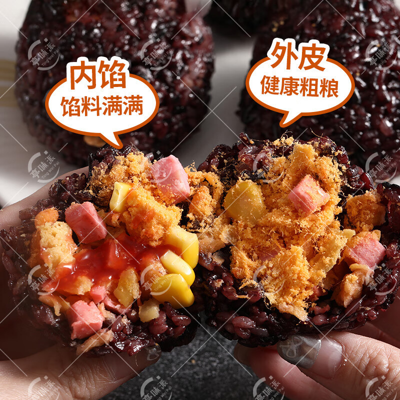【五谷粗粮❗️墨鱼肉松团子】营养早餐好选择,五谷粗粮搭配肉松,玉米粒和火腿,软糯咸香,新鲜日期,蒸锅加热口感更佳,有肉有饭轻松代餐,速食早餐开袋即食饭团L
