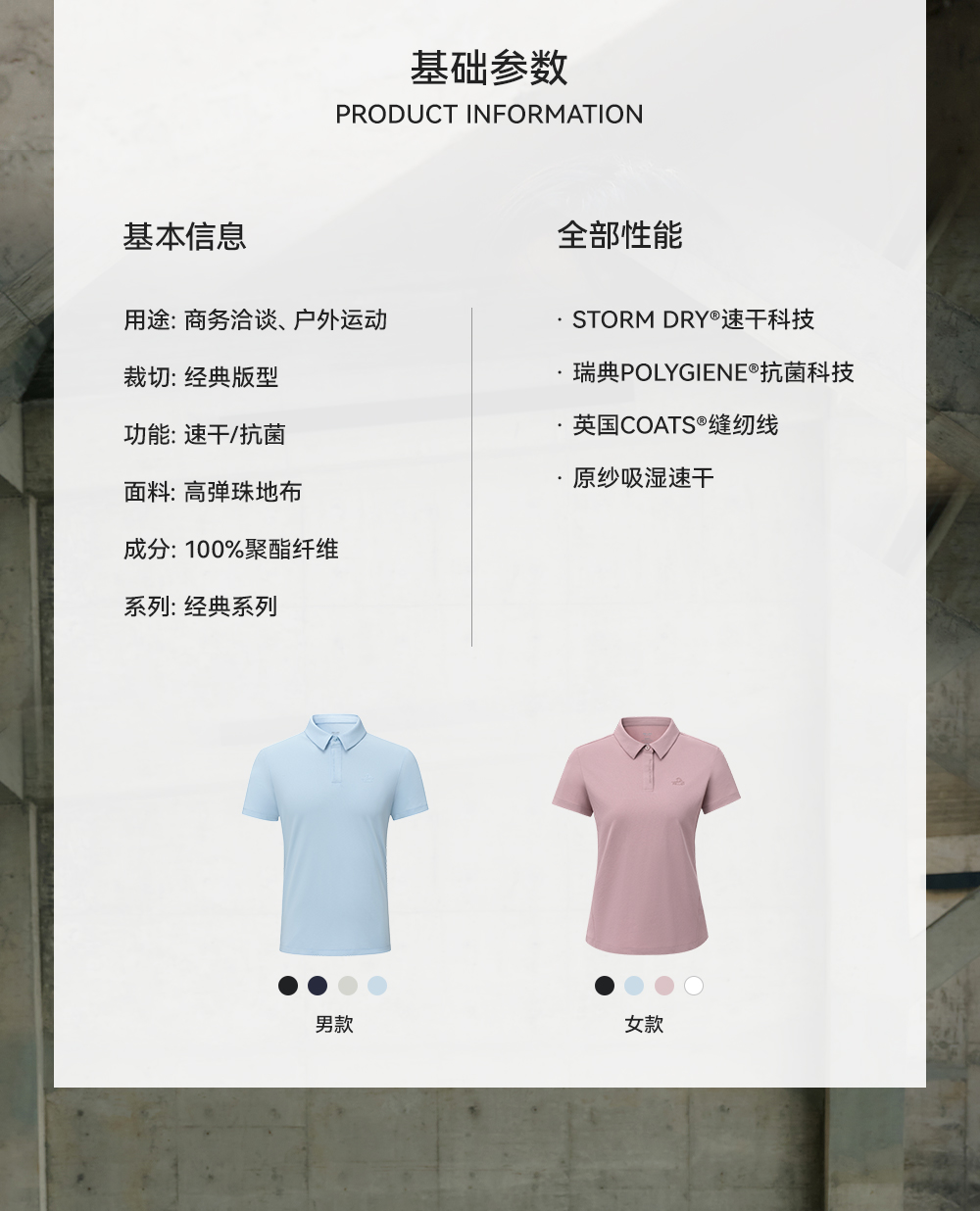 伯希和户外速干T恤男新款运动吸湿短袖弹力修身半袖女商务POLO衫