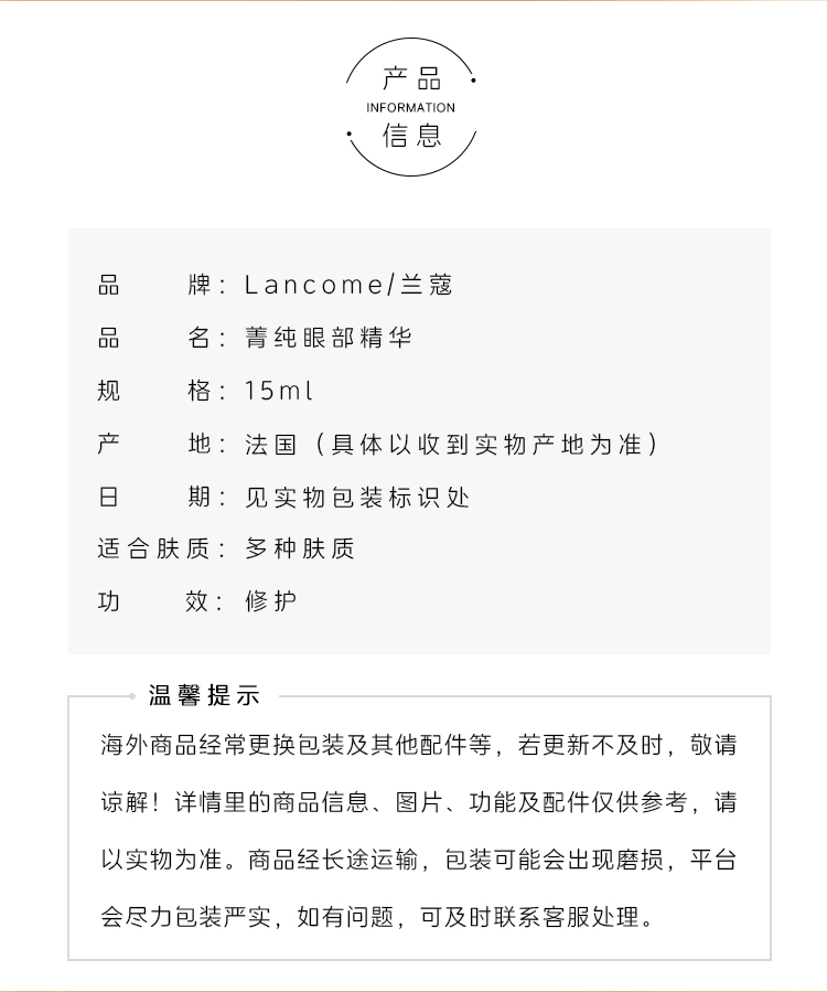 Lancome兰蔻新菁纯臻颜眼部精华乳15ml 滋润眼部改善细纹