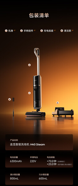 追觅H40 Steam洗地0缠毛静音烘洗地机吸拖一体自动清洗拖地扫地洗地机器人