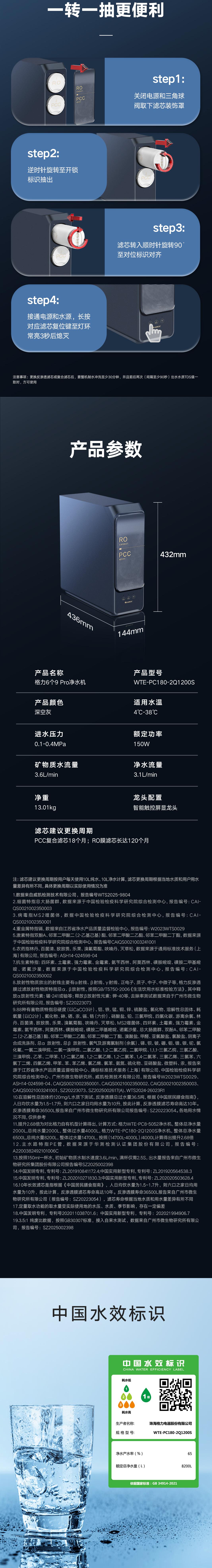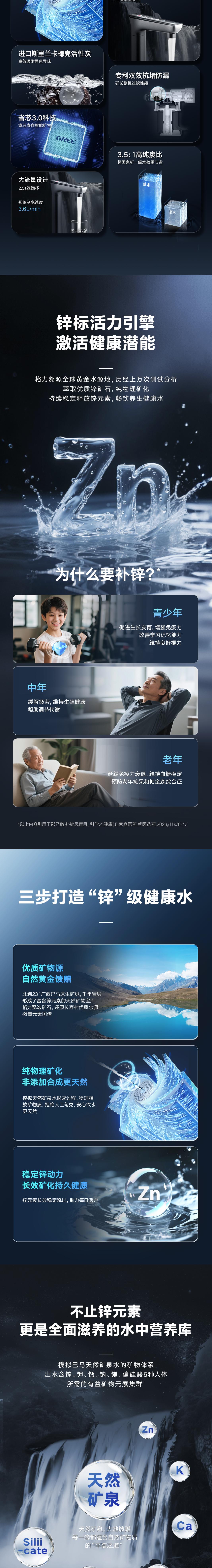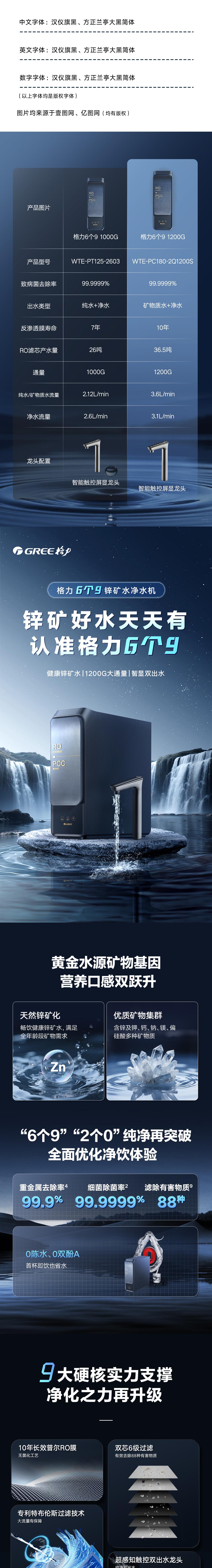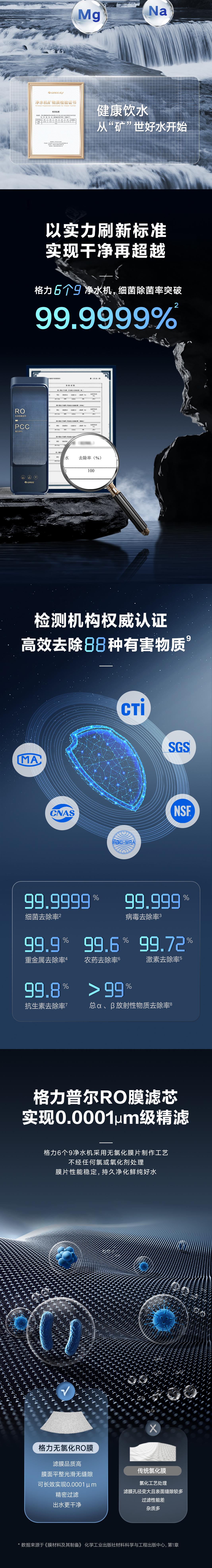 格力"6个9"系列反渗透净水机 锌矿好水 健康畅饮 WTE-PC180-2Q1200S 灰色