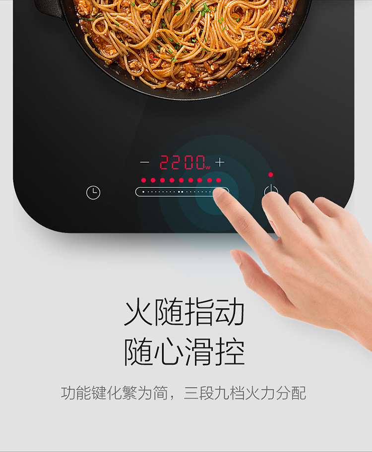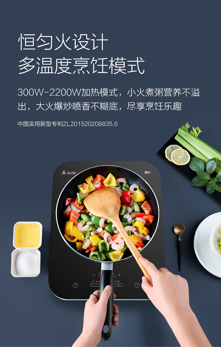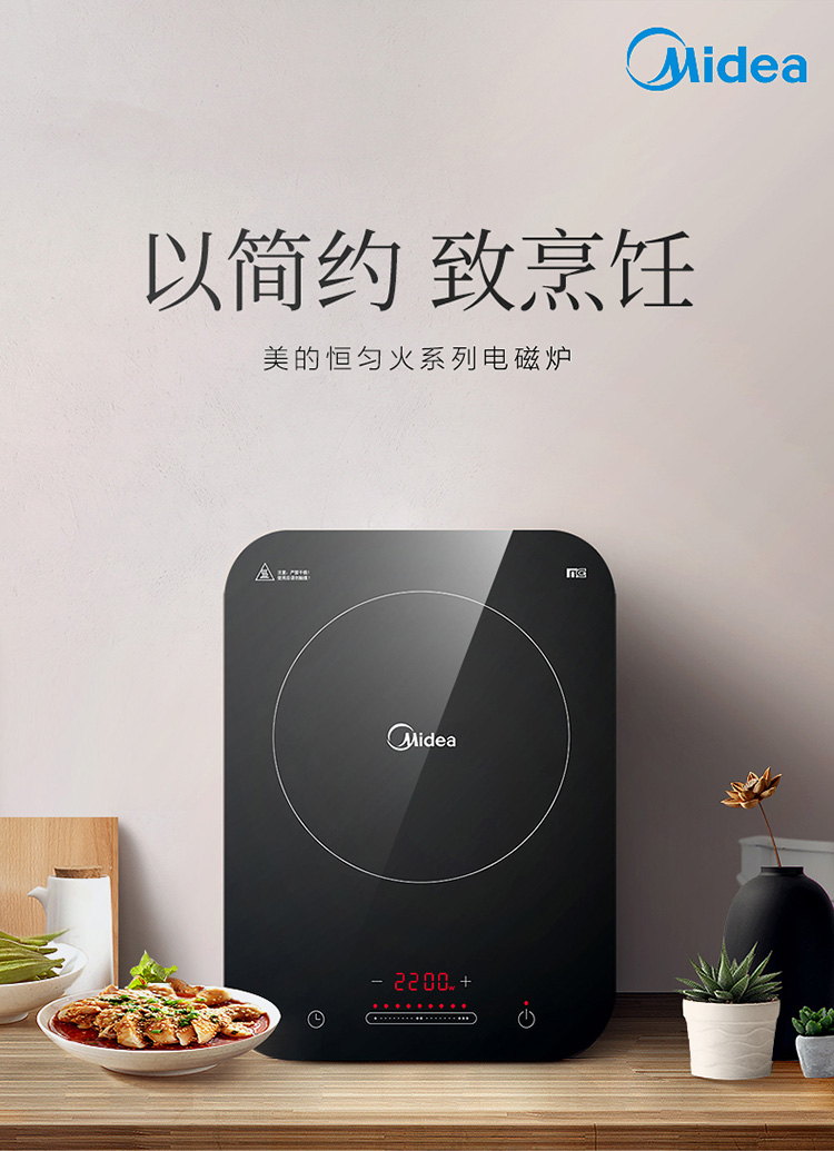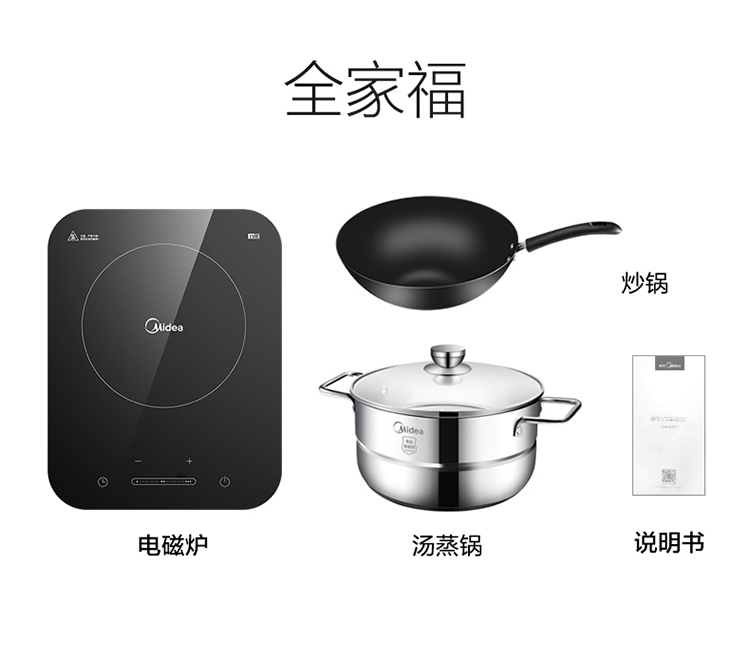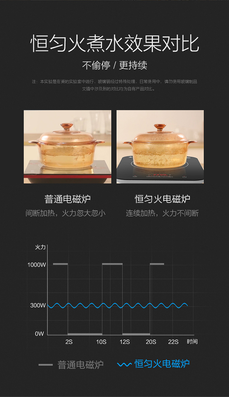 美的(Midea)电磁炉 恒匀火不间断加热 匀火188mm大线圈盘 滑控 微晶面板 C22-WH2237(赠汤蒸锅+渗氮炒锅)
