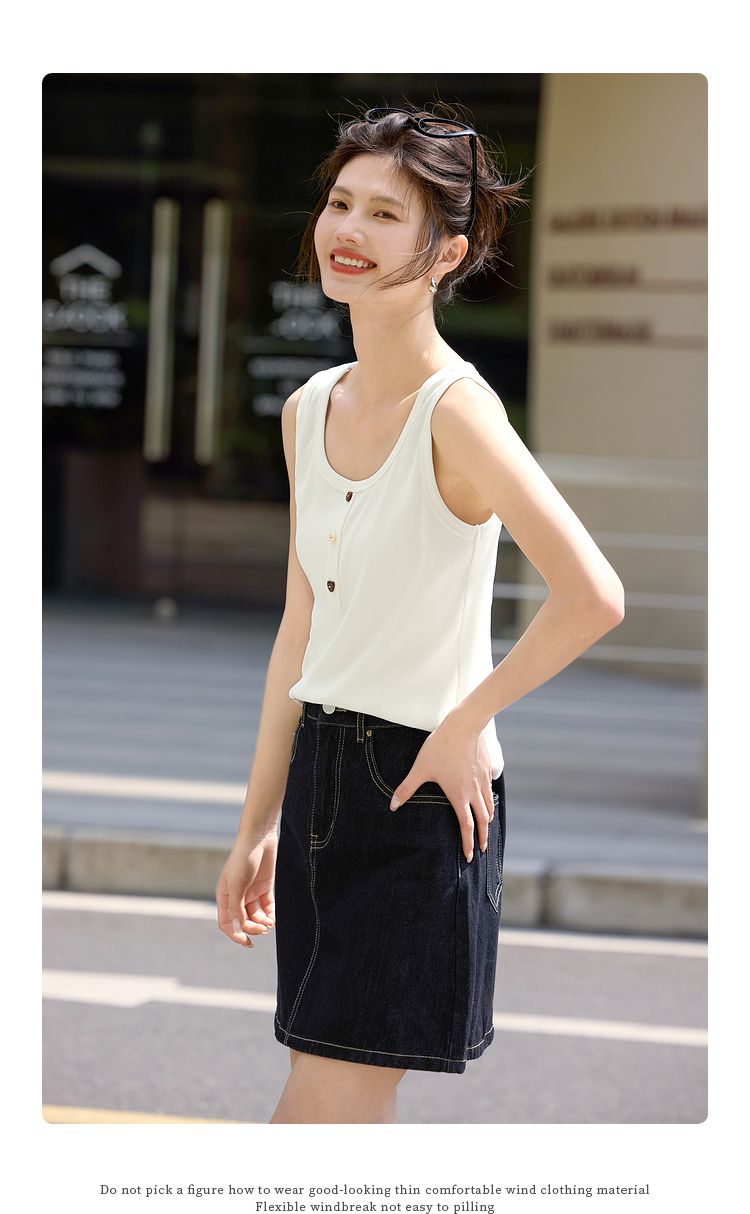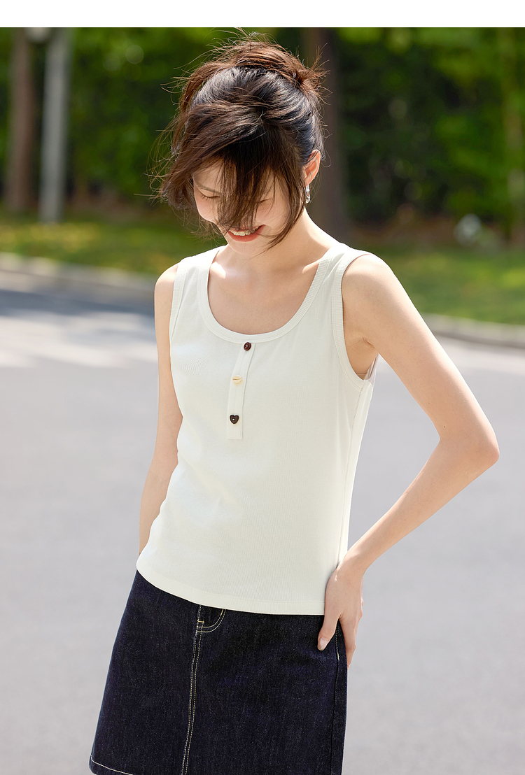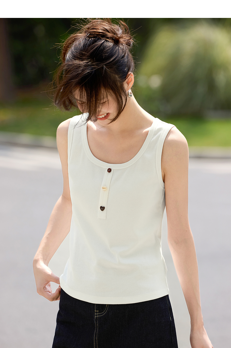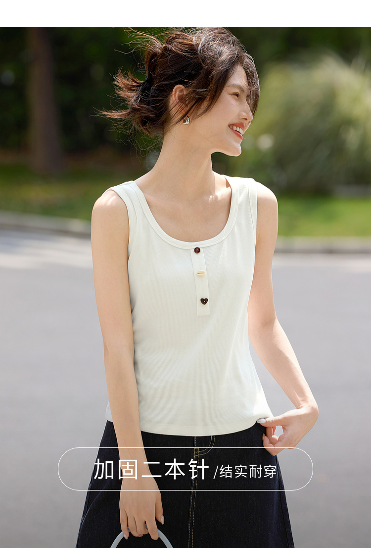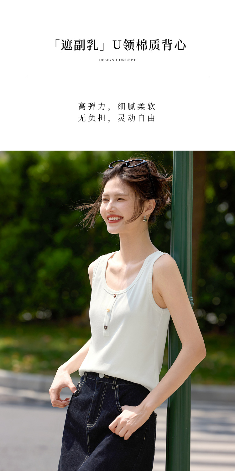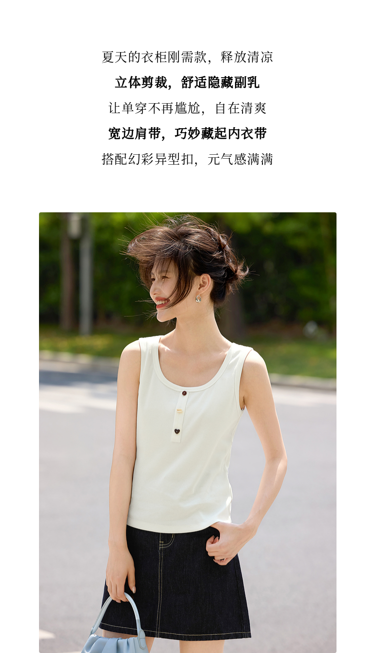 熙世界冰丝U领吊带背心女夏季2025新款基础百搭白色宽肩无袖上衣
