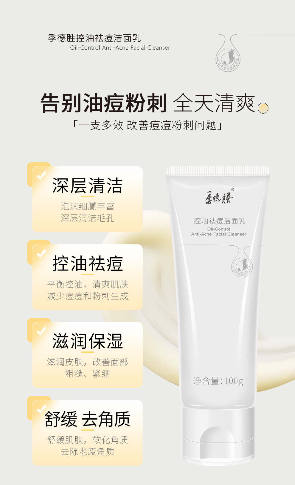 【新升级一支多效】季德胜老国货洁面乳舒缓去角质 粉刺 黑头深层清洁毛孔洗面奶