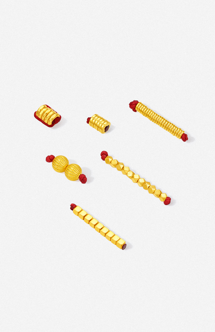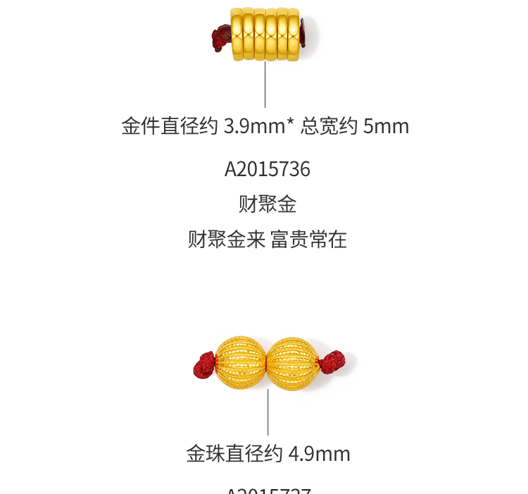 周六福黄金计价聚财盘缠金足金转运珠串珠可DIY手绳项链七夕礼物