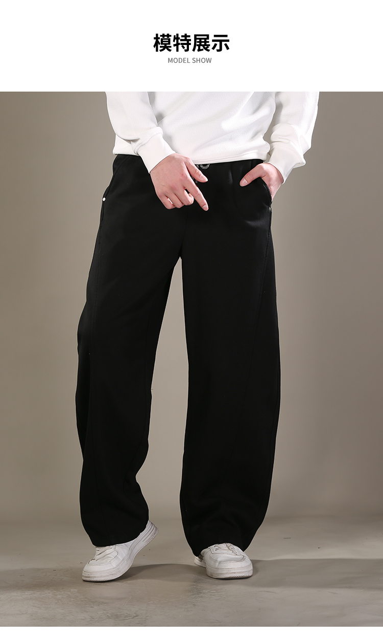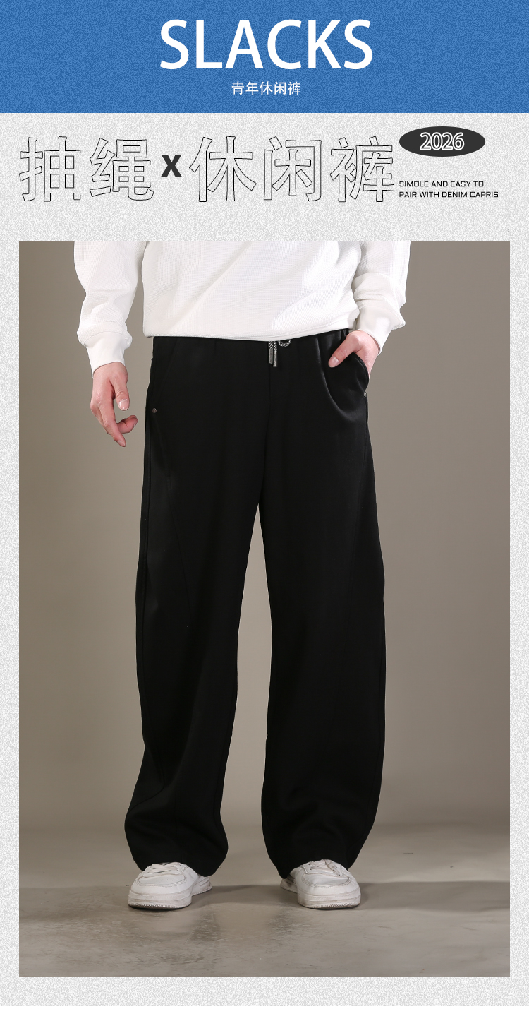 DRONKOO 2026 花色抽绳松紧口袋同色钉扣前斜压线结构中厚卫裤长裤