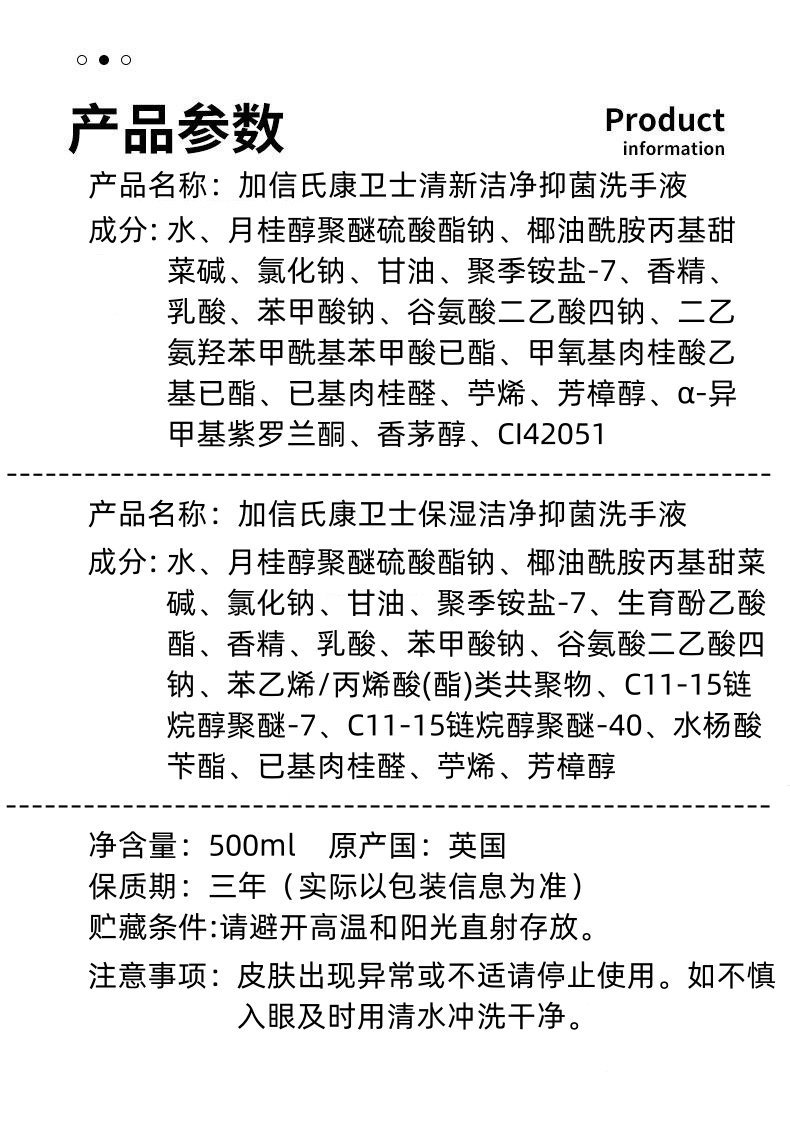 英国进口加信氏康卫士抑菌洗手液500ml【清新洁净丨保湿洁净】