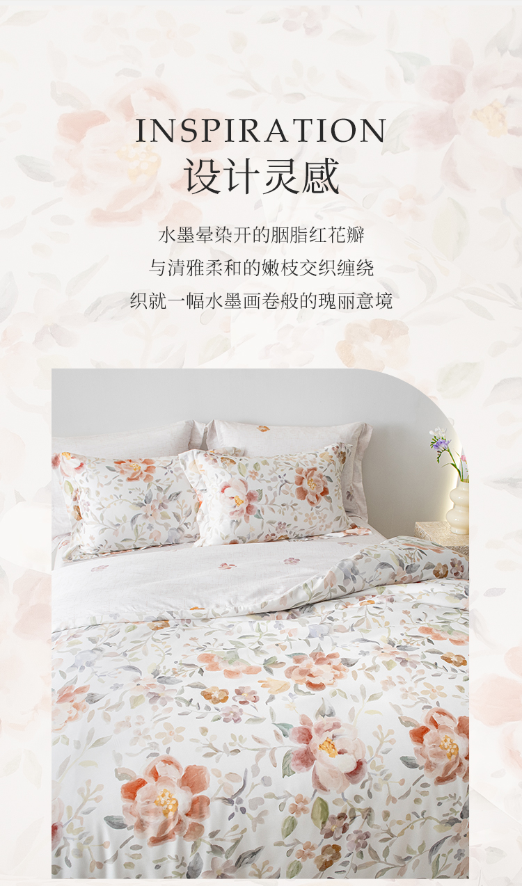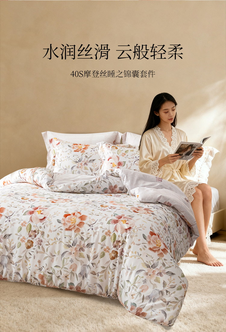 雅芳婷摩登丝床上五件套床笠款田园风莫代尔被套薄被芯套件家纺