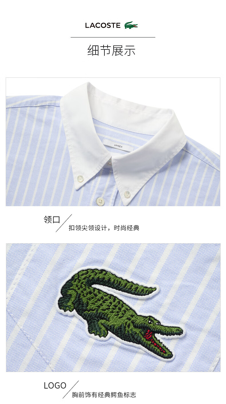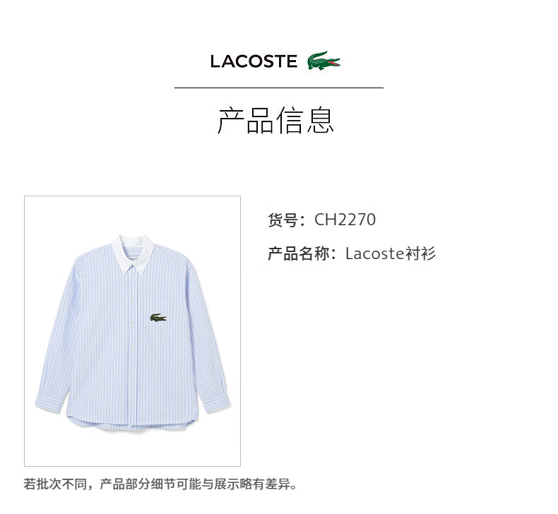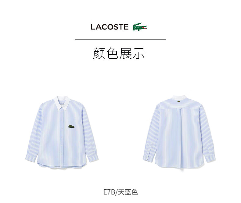 Lacoste法国鳄鱼男装新款时尚休闲简约条纹长袖衬衫CH2270-10