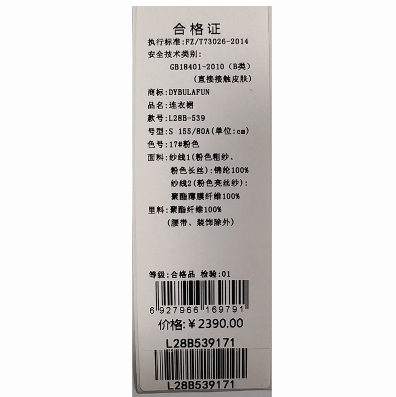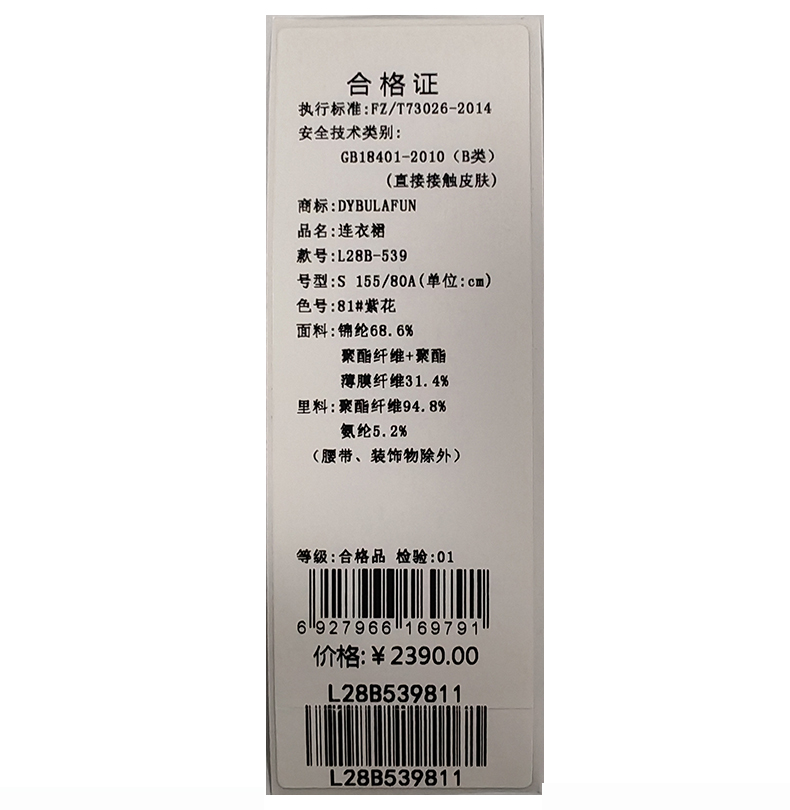 戴布拉芬连衣裙L28B539