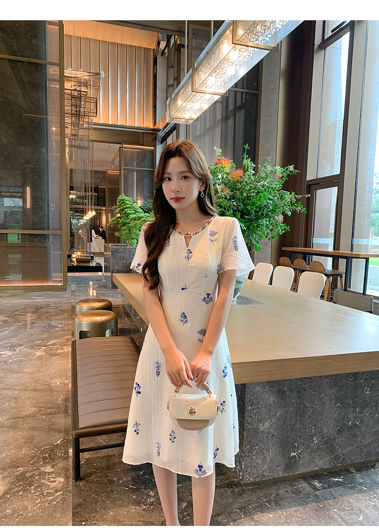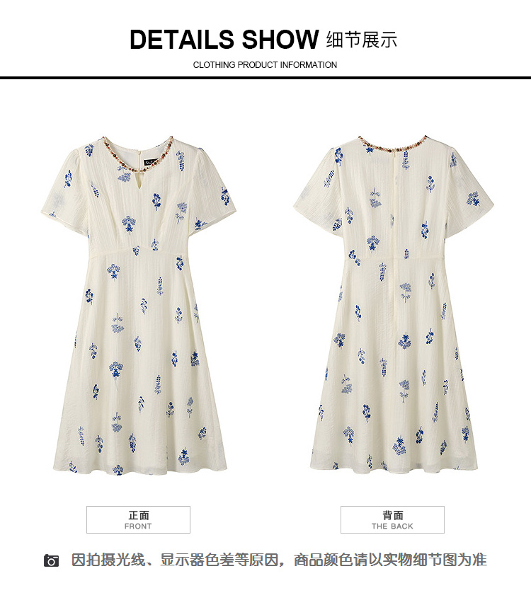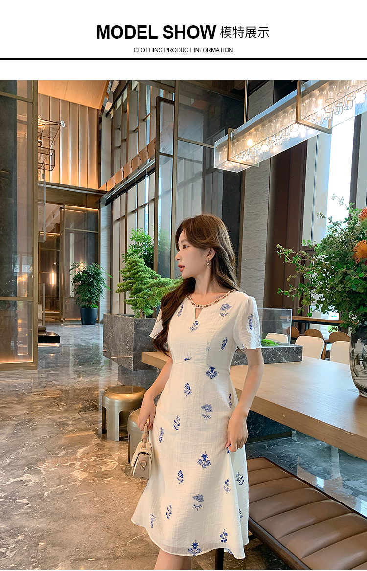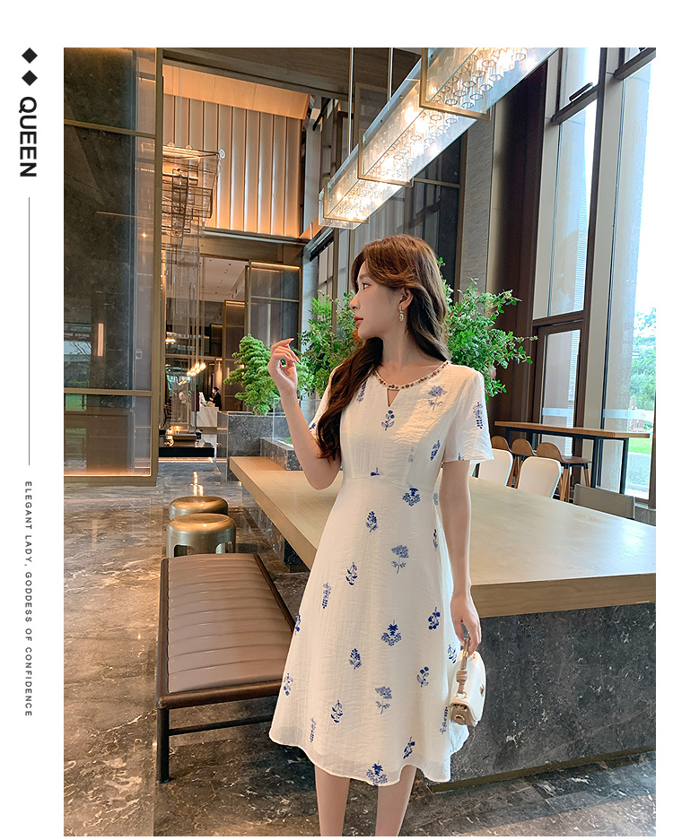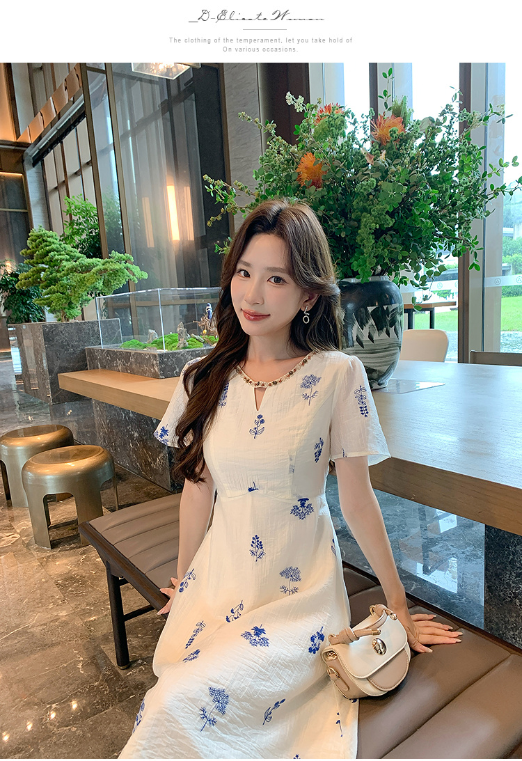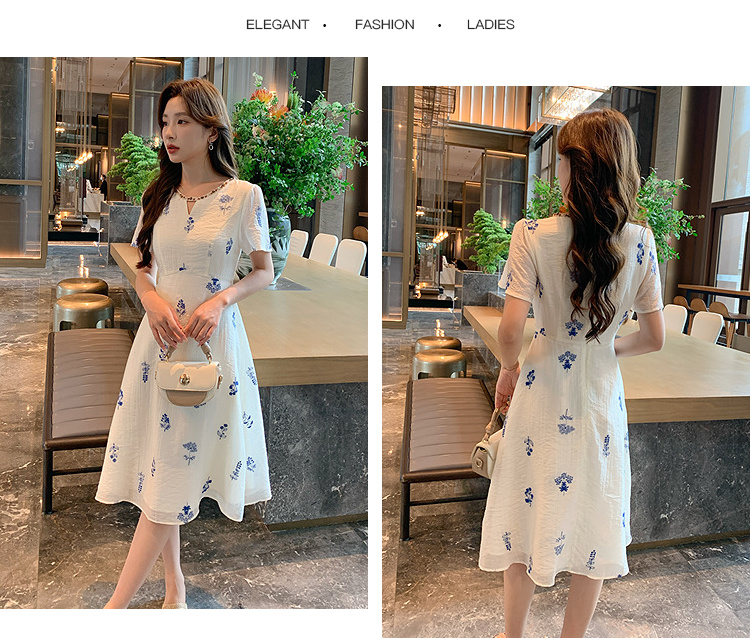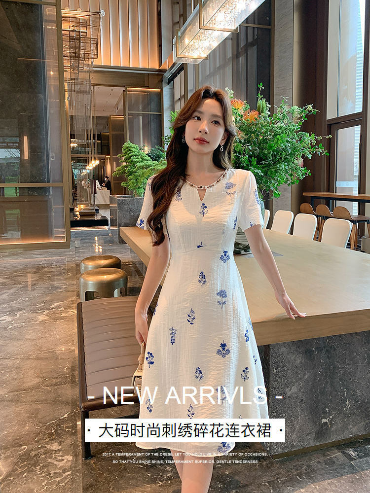 奢姿大码女装2025夏季短袖度假刺绣碎花设计感优雅气质长款连衣裙9952853402