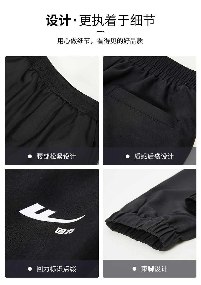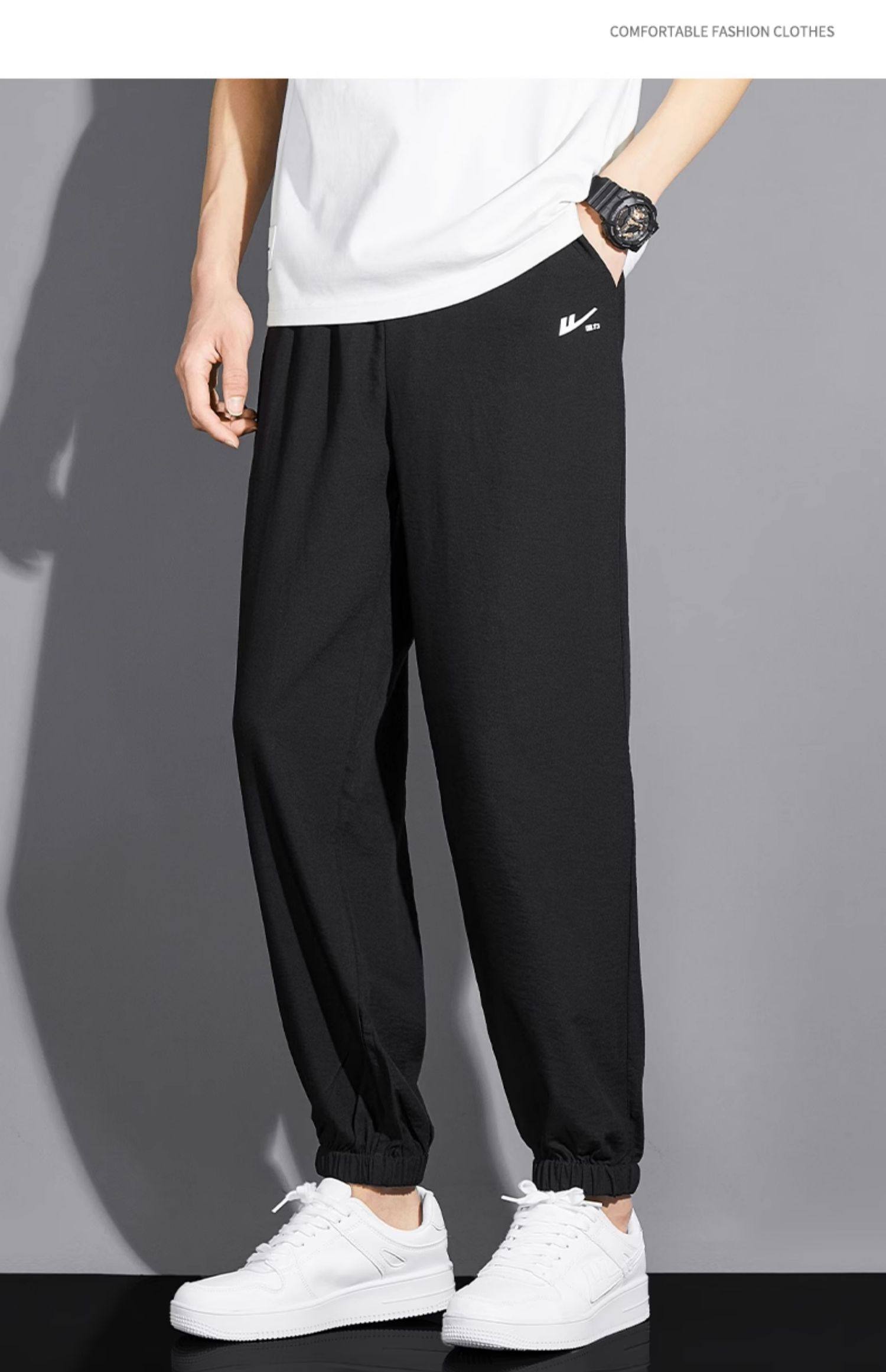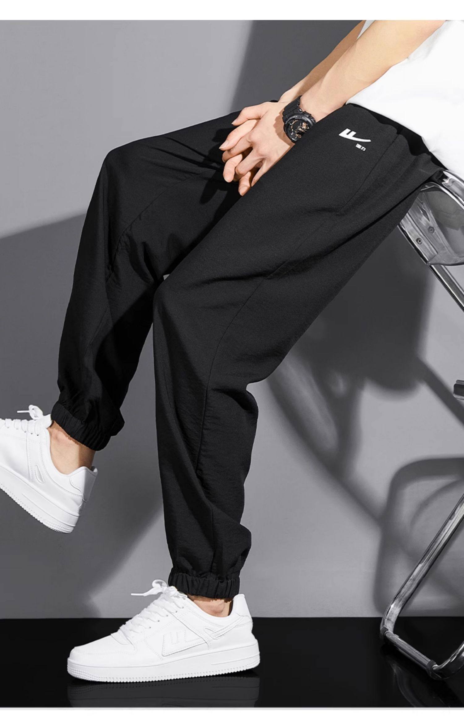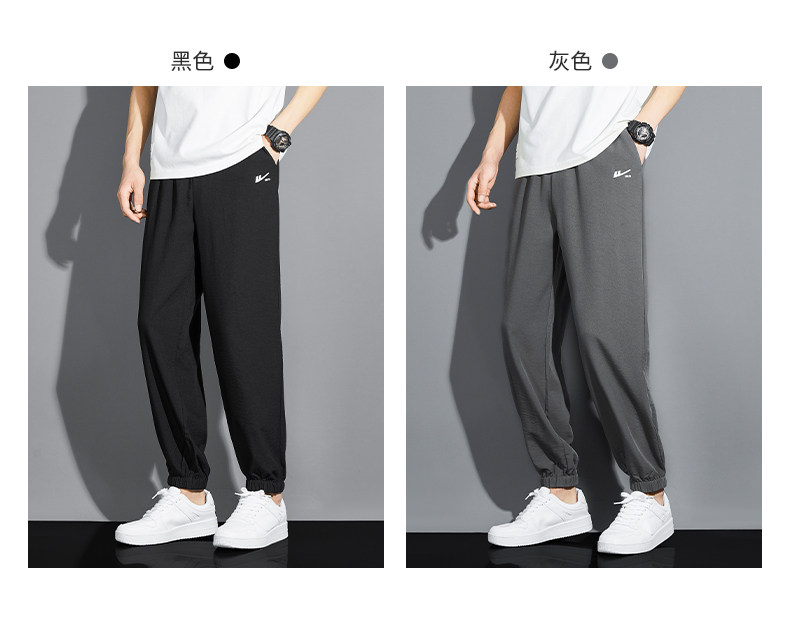 回力冰丝裤子男款秋季宽松薄款休闲长裤男士束脚透气运动裤男秋天
