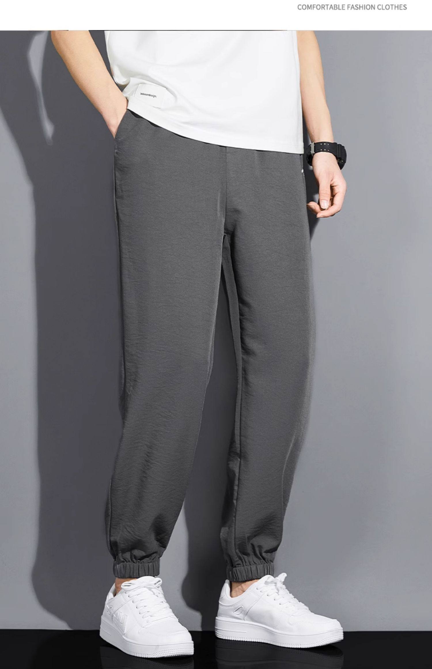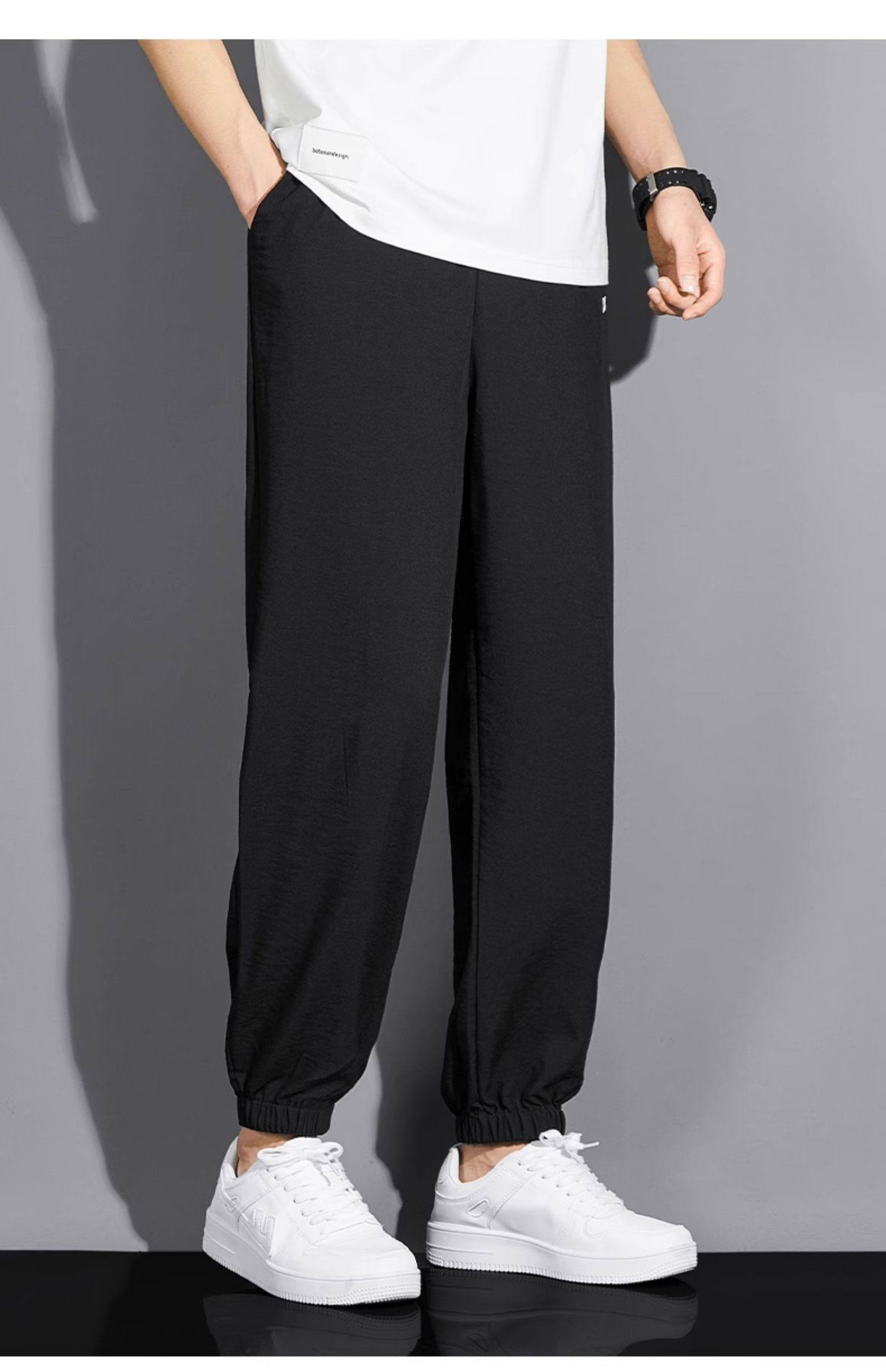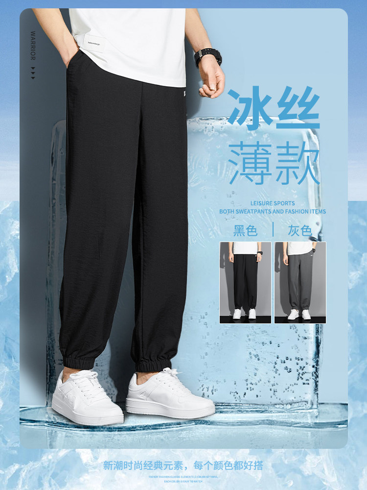 回力冰丝裤子男款秋季宽松薄款休闲长裤男士束脚透气运动裤男秋天