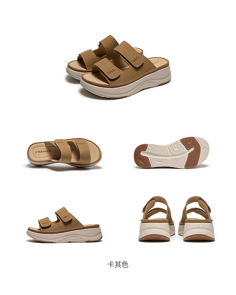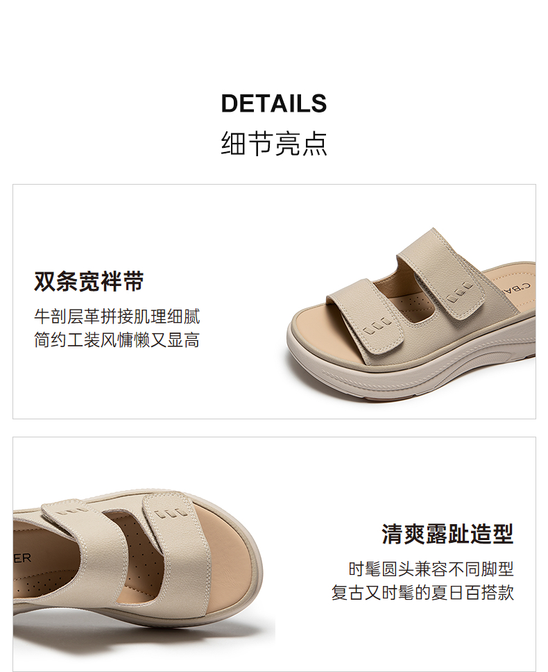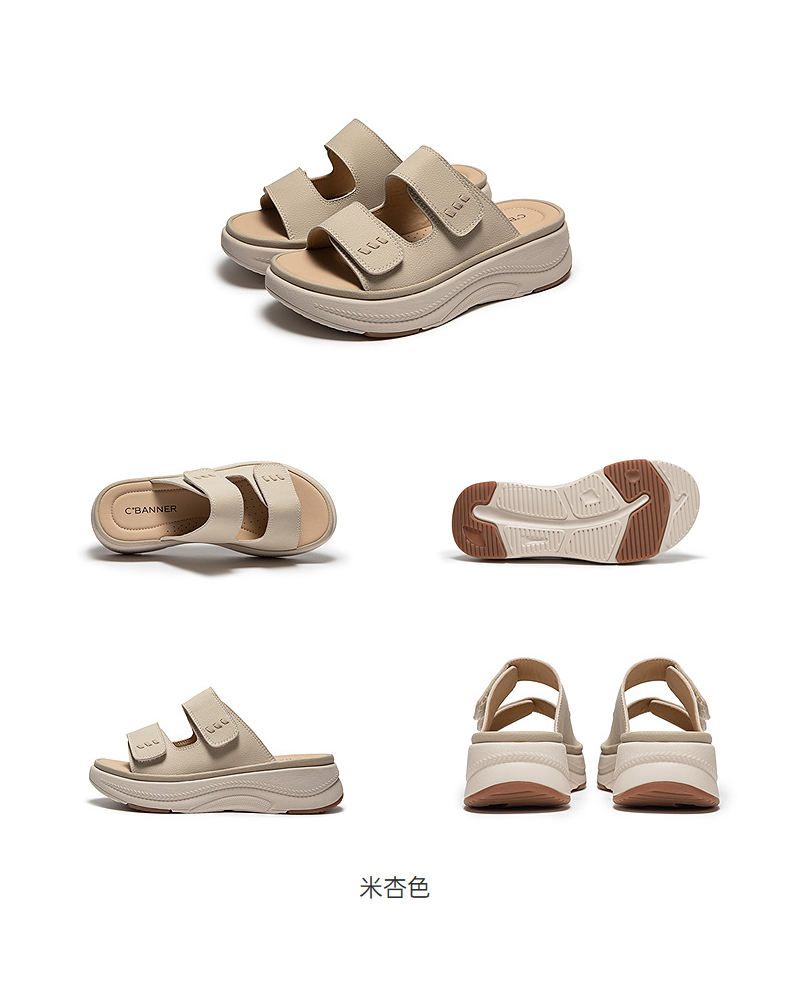 【上新】千百度厚底真皮露趾凉拖鞋女2026夏季新款平底增高一字拖A26386292