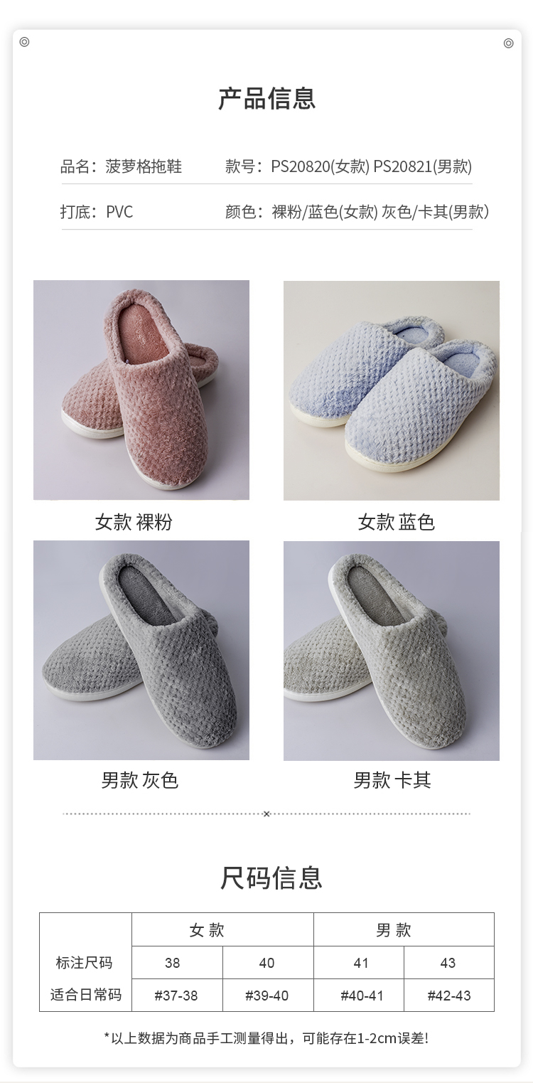 菠萝格吸湿透气久穿耐磨情侣款棉拖鞋PS20820/PS20821