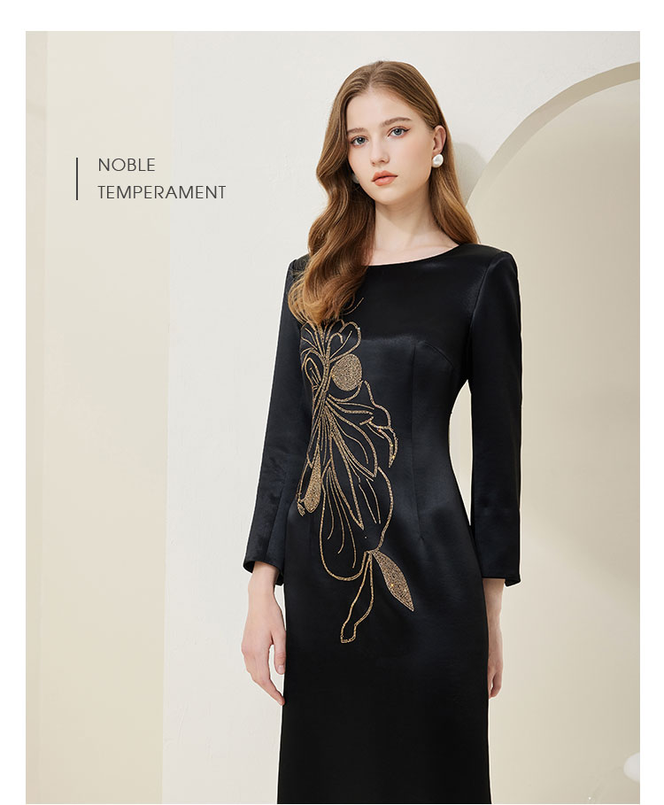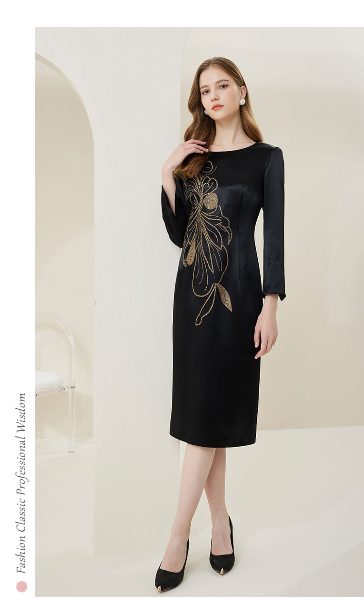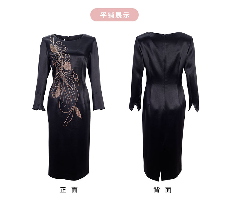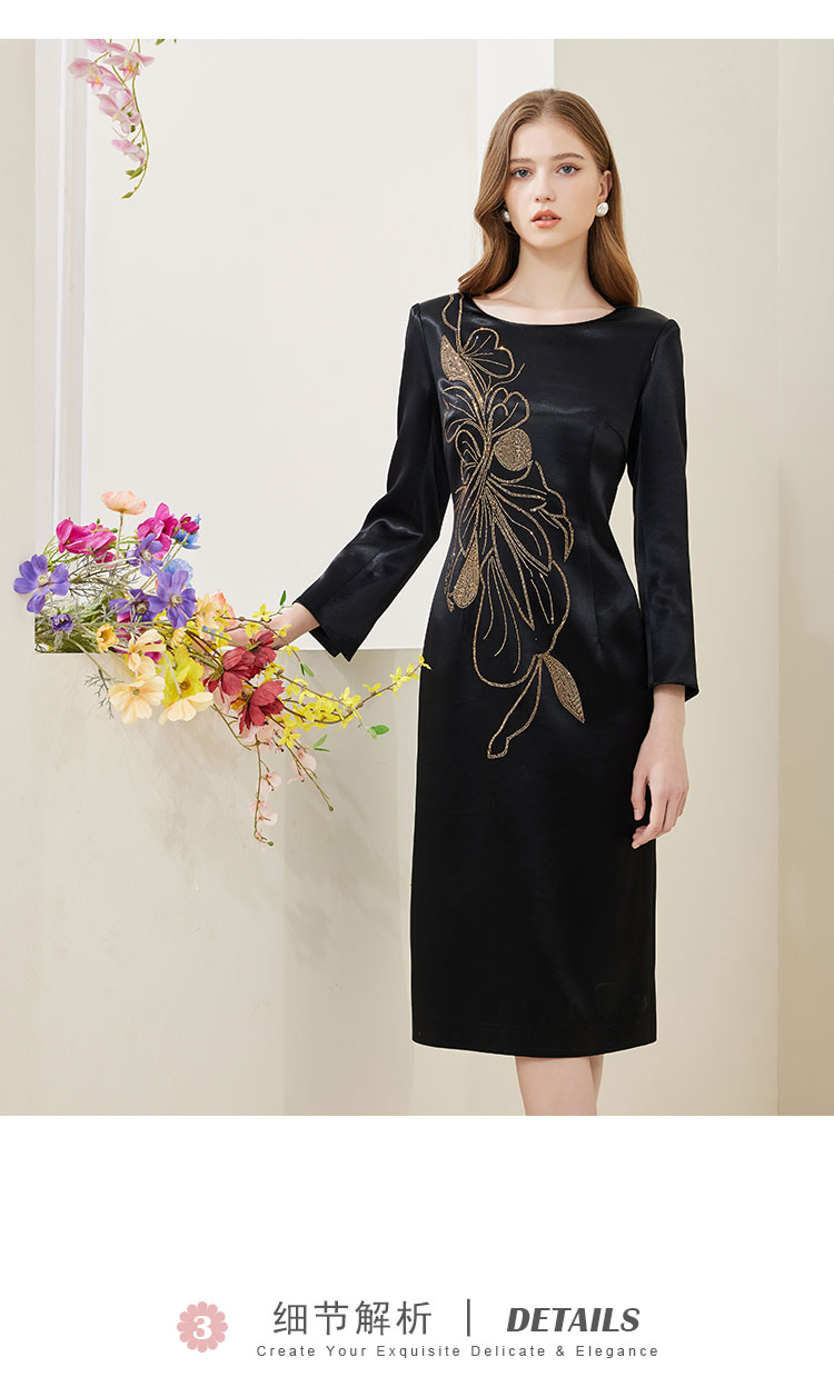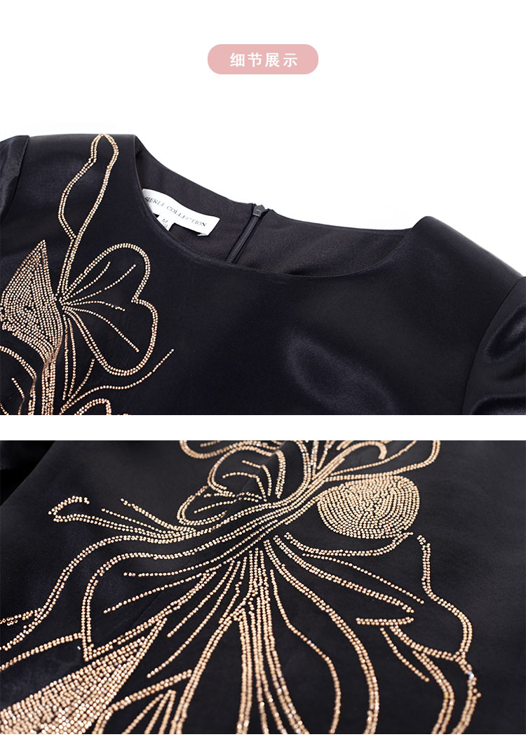 NA814斯尔丽[商场同款]春季新款醋酸烫钻蝴蝶花收腰显瘦圆领长袖连衣裙