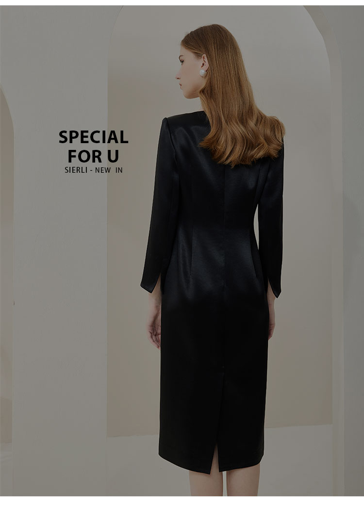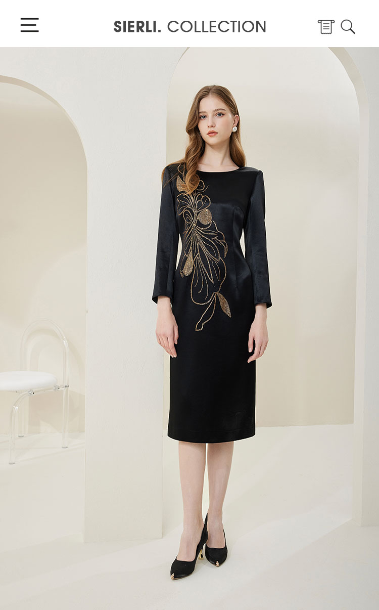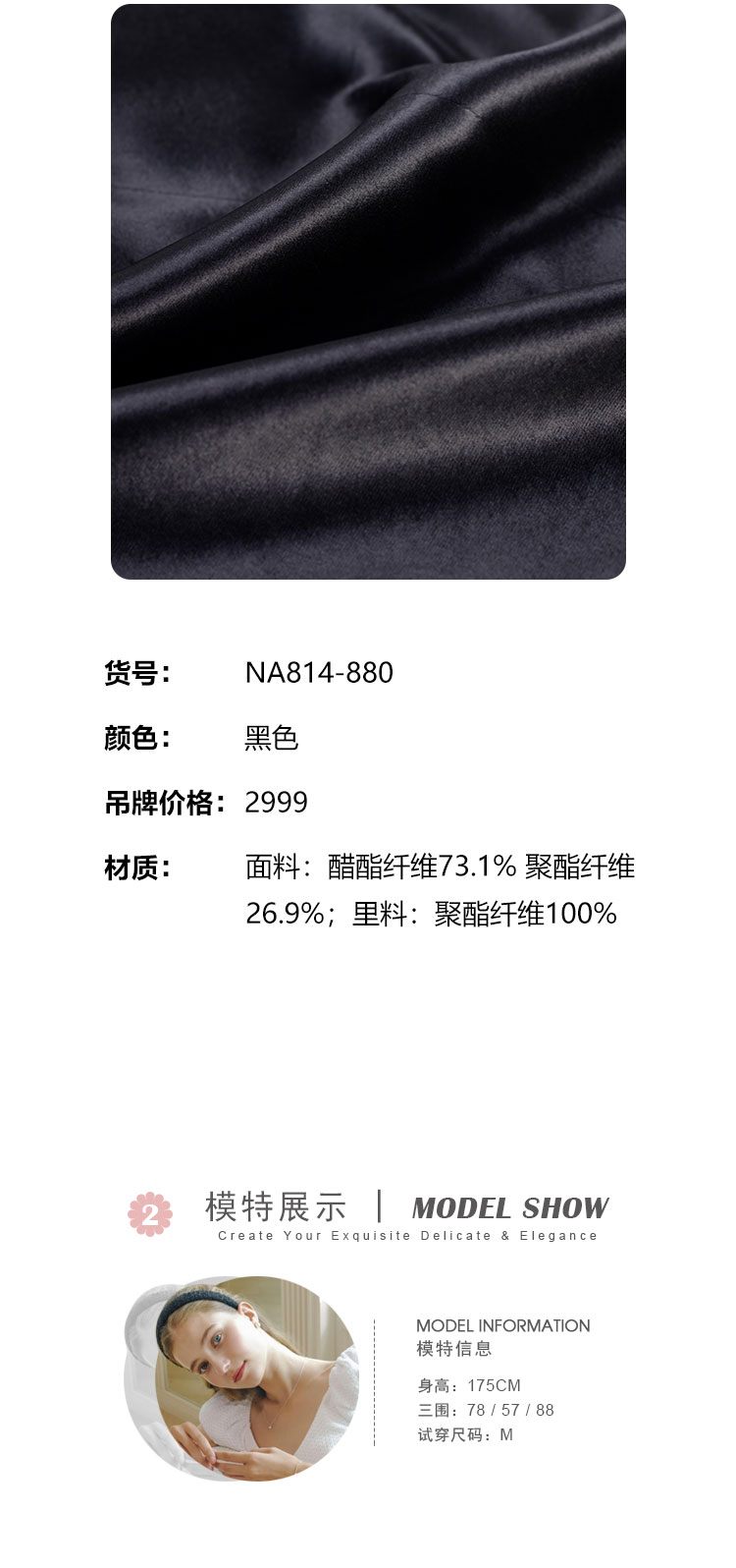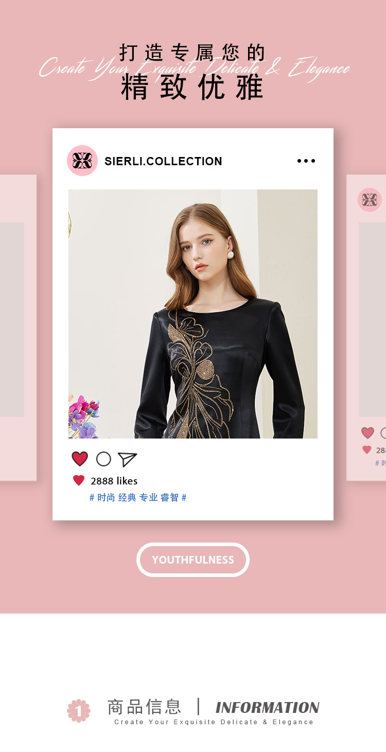 NA814斯尔丽[商场同款]春季新款醋酸烫钻蝴蝶花收腰显瘦圆领长袖连衣裙