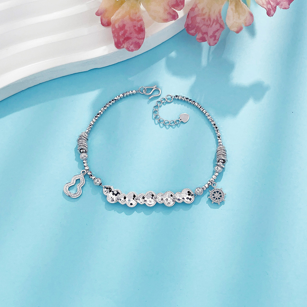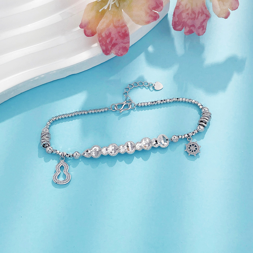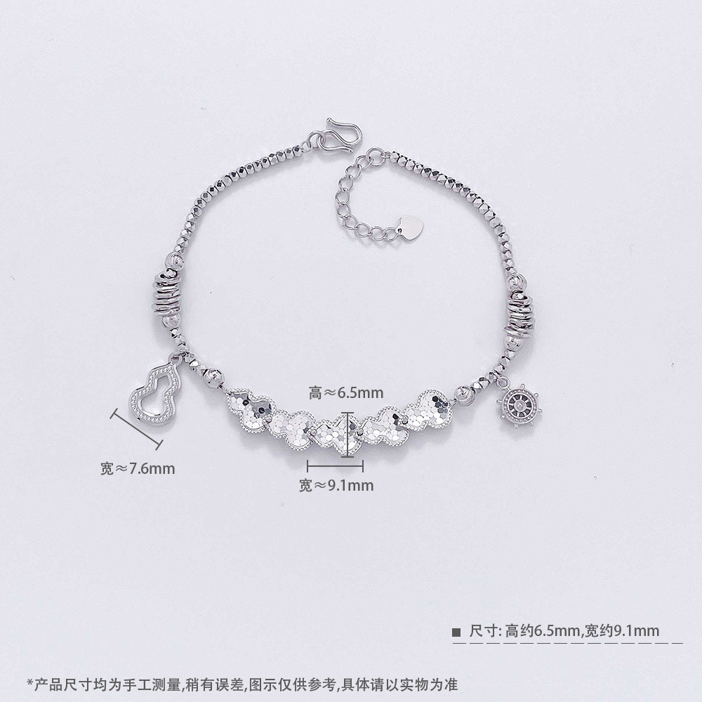 【限时8.8折】【线上铂金馆】PT950 #招财纳福 铂金空心调节福禄连连船舵葫芦吊饰碎金子间鱼鳞葫芦手链(内里为铂金链)(PTSL00073)预售产品下单后不退款不退货不换货不补差价)