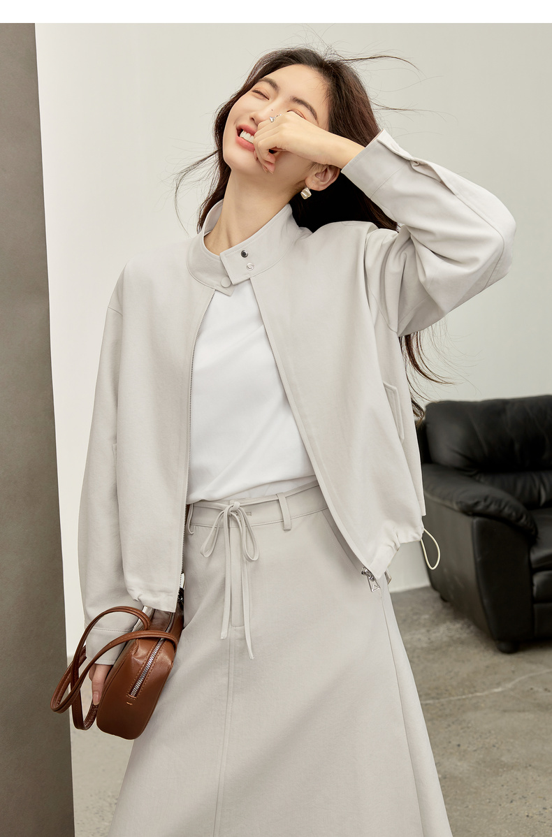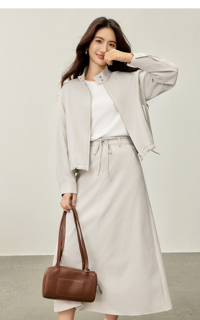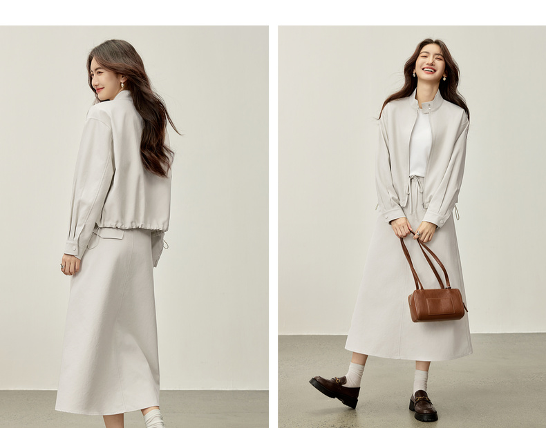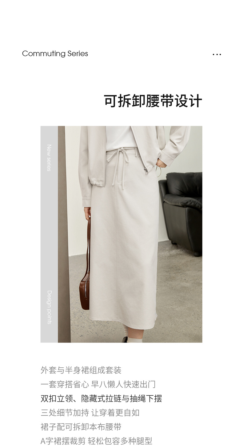 【内购】【免搭配套装】通勤双扣立领落肩宽松外套&可拆卸腰带A字半身裙-153ZA2427