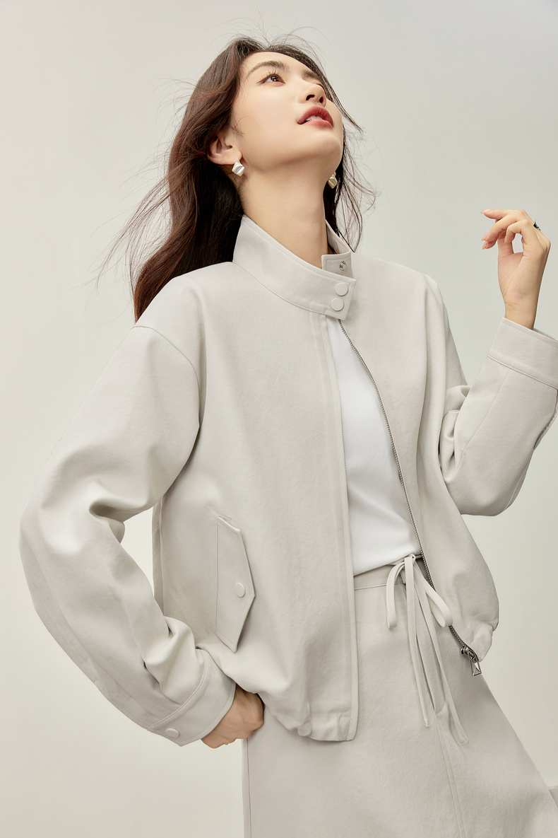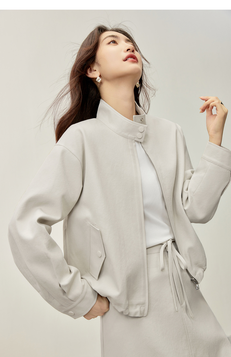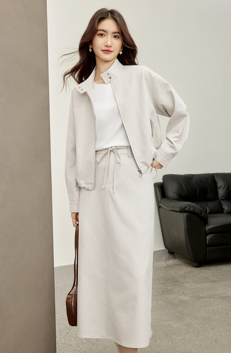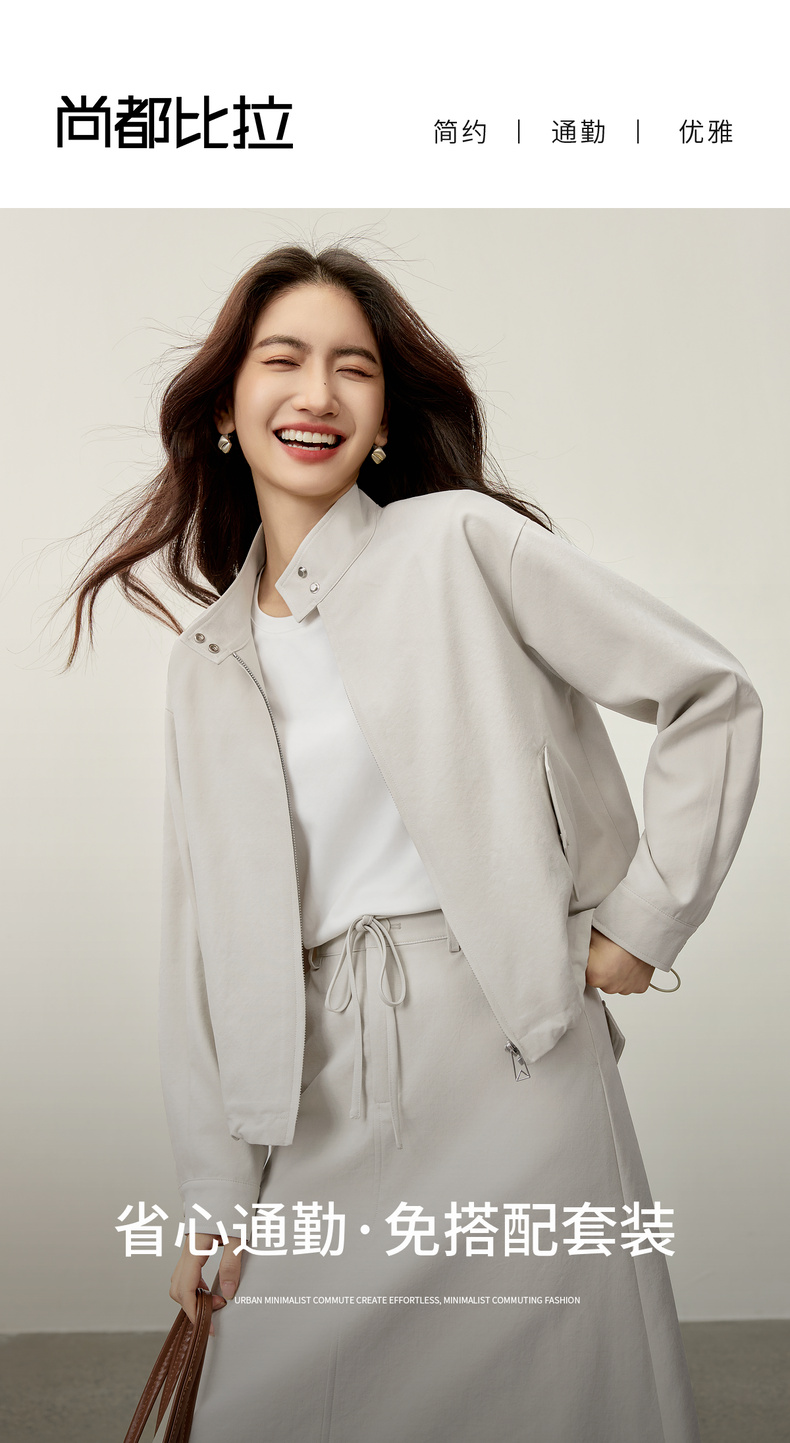 【内购】【免搭配套装】通勤双扣立领落肩宽松外套&可拆卸腰带A字半身裙-153ZA2427