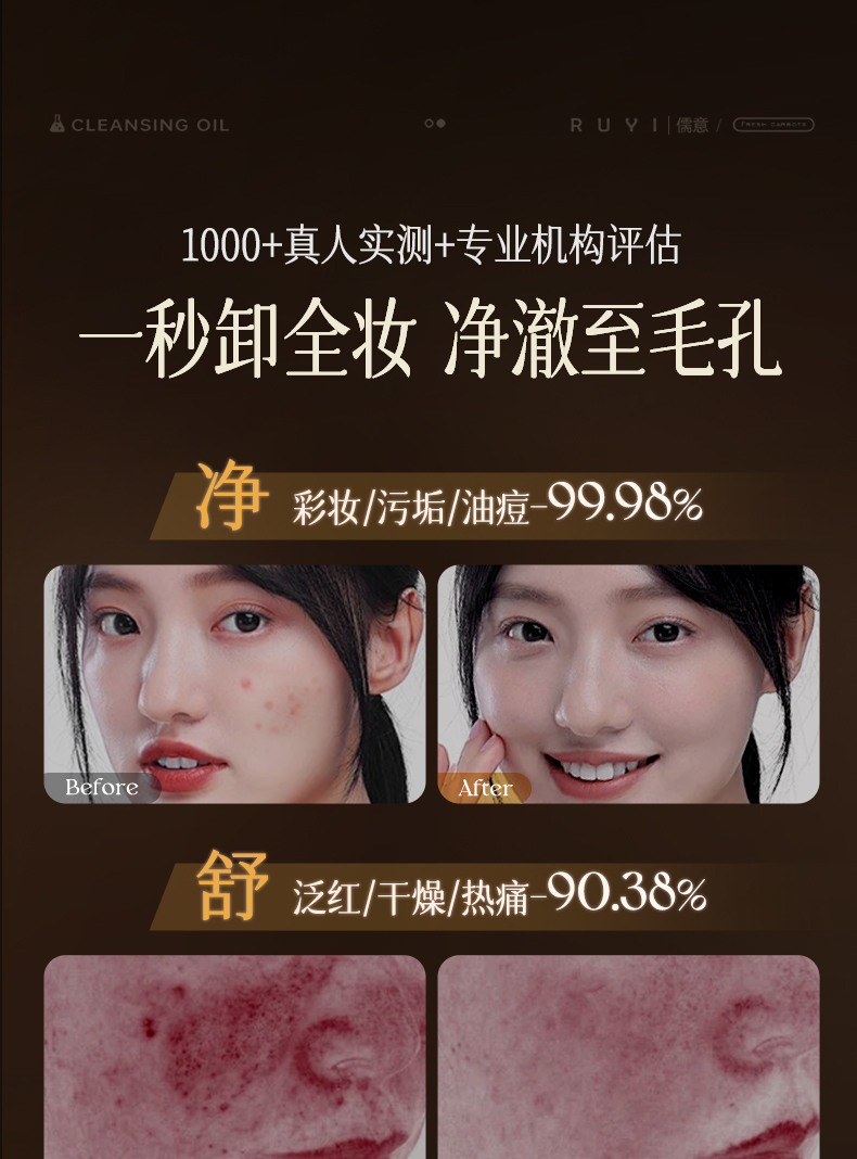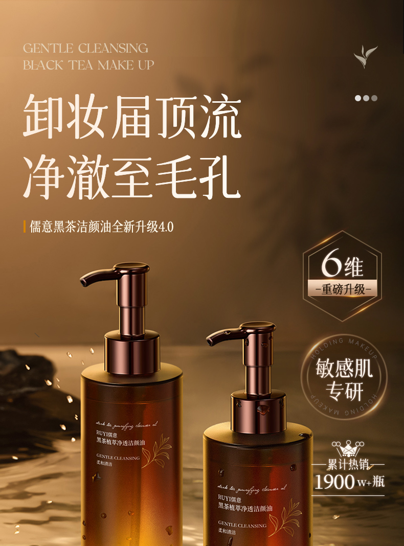 儒意黑茶植萃净透洁颜油300ml 卸妆膏水油彩妆眼唇脸三合一温和深层清洁|儒意官方商城