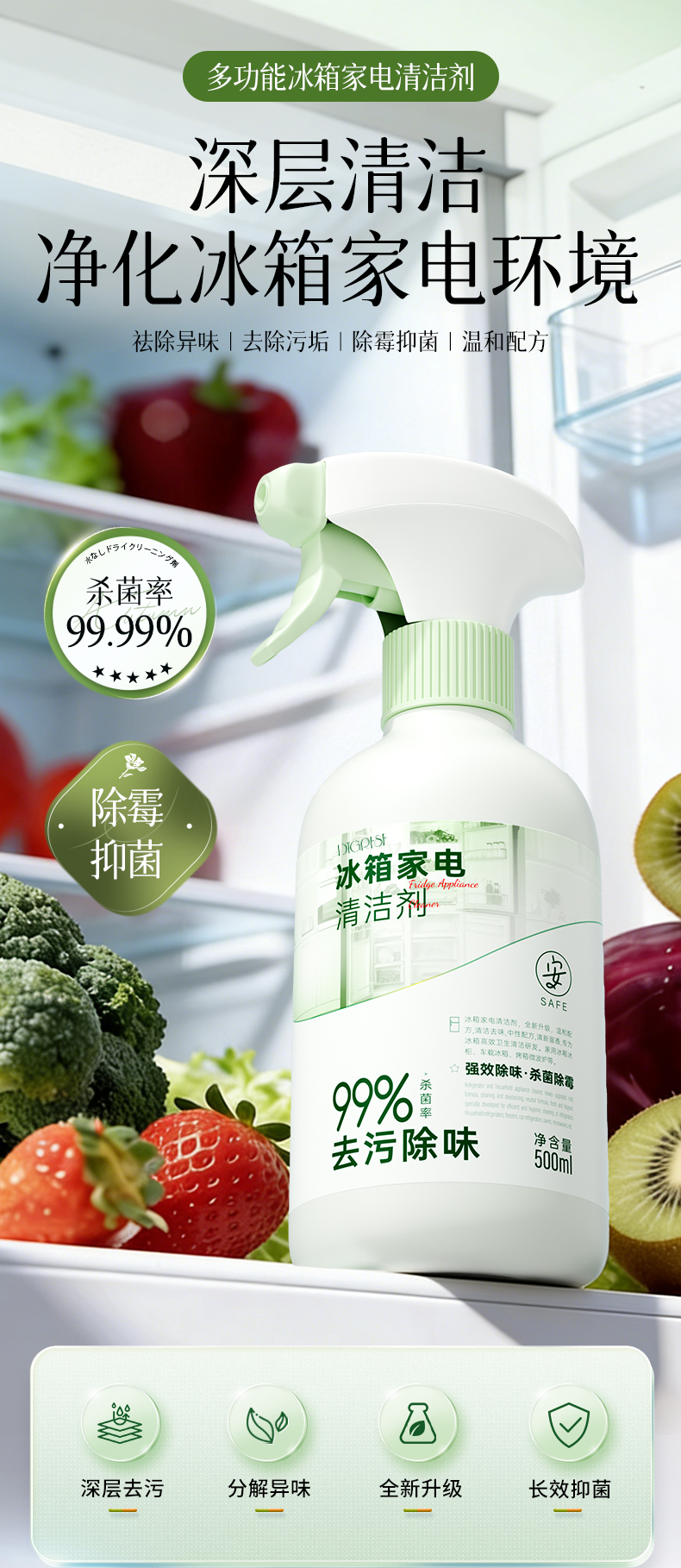 【涤戈 冰箱家电清洁剂】清洁+养护双效合一 抑菌去味 胶条去霉 温和配方 冰箱清洗剂 告别冰箱异味