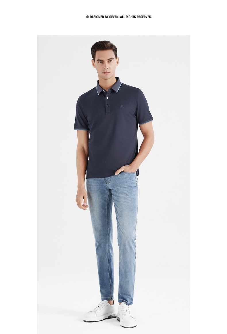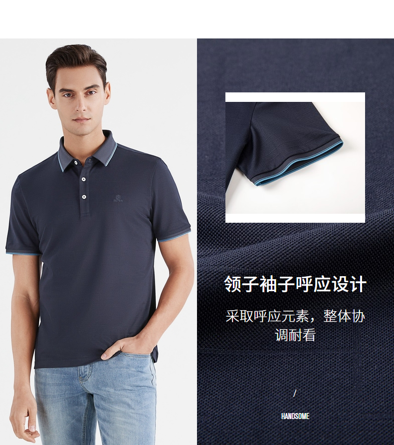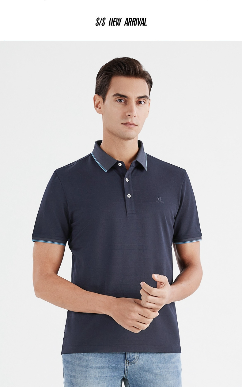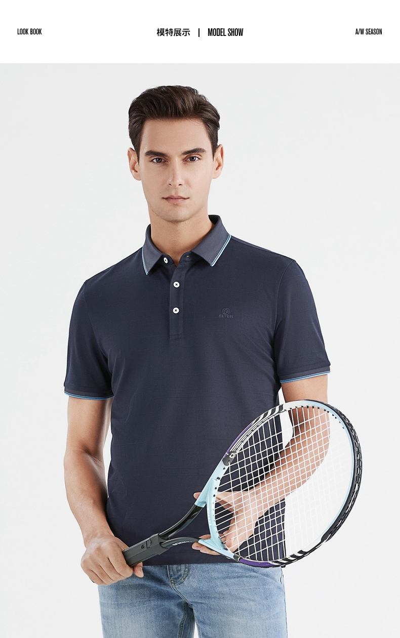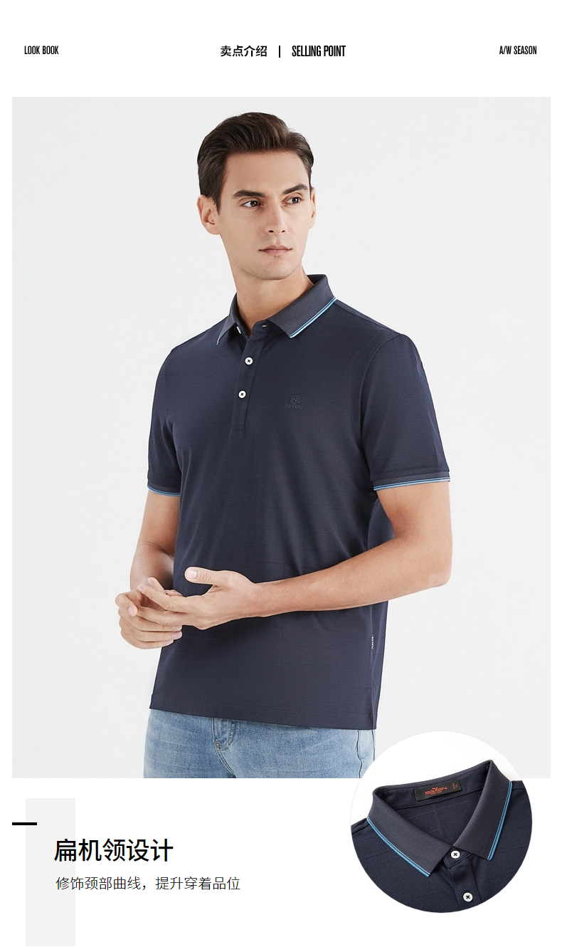 柒牌polo衫男夏季薄款商务休闲上班男士翻领暗提花短袖保罗衫 122T70520