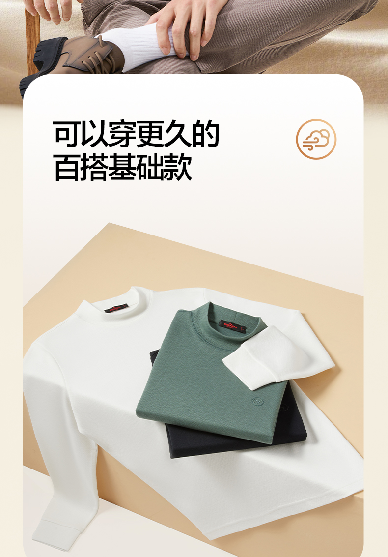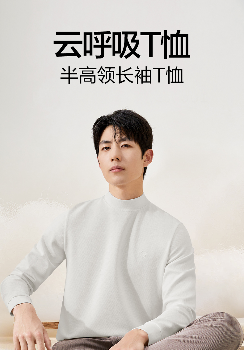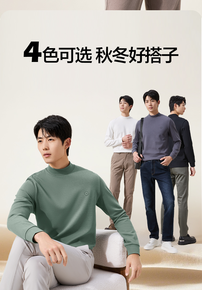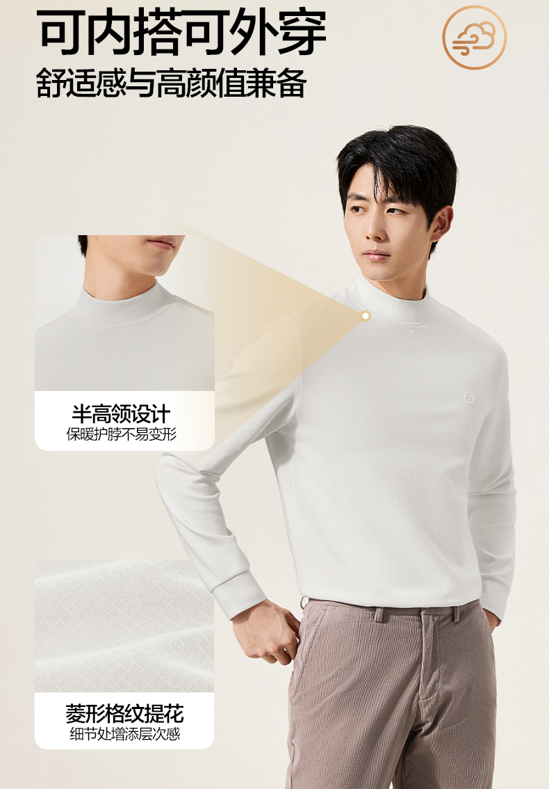 【提花肌理T恤】柒牌男士秋冬季新款半高领弹力T恤时尚休闲上衣129T70160