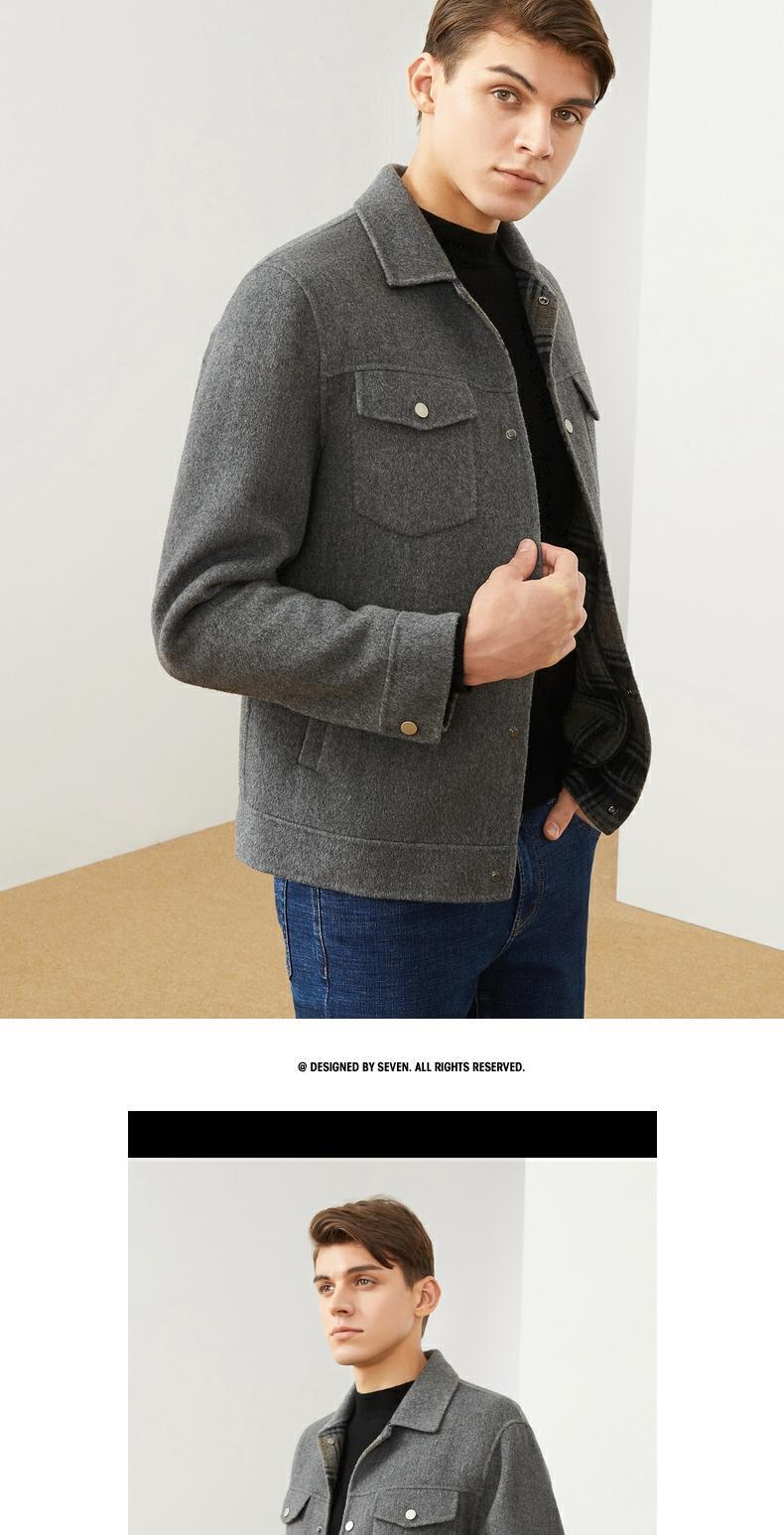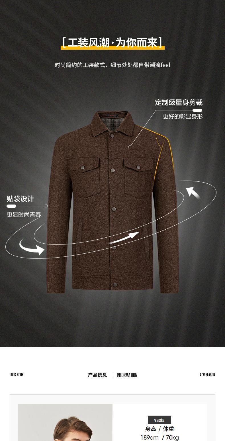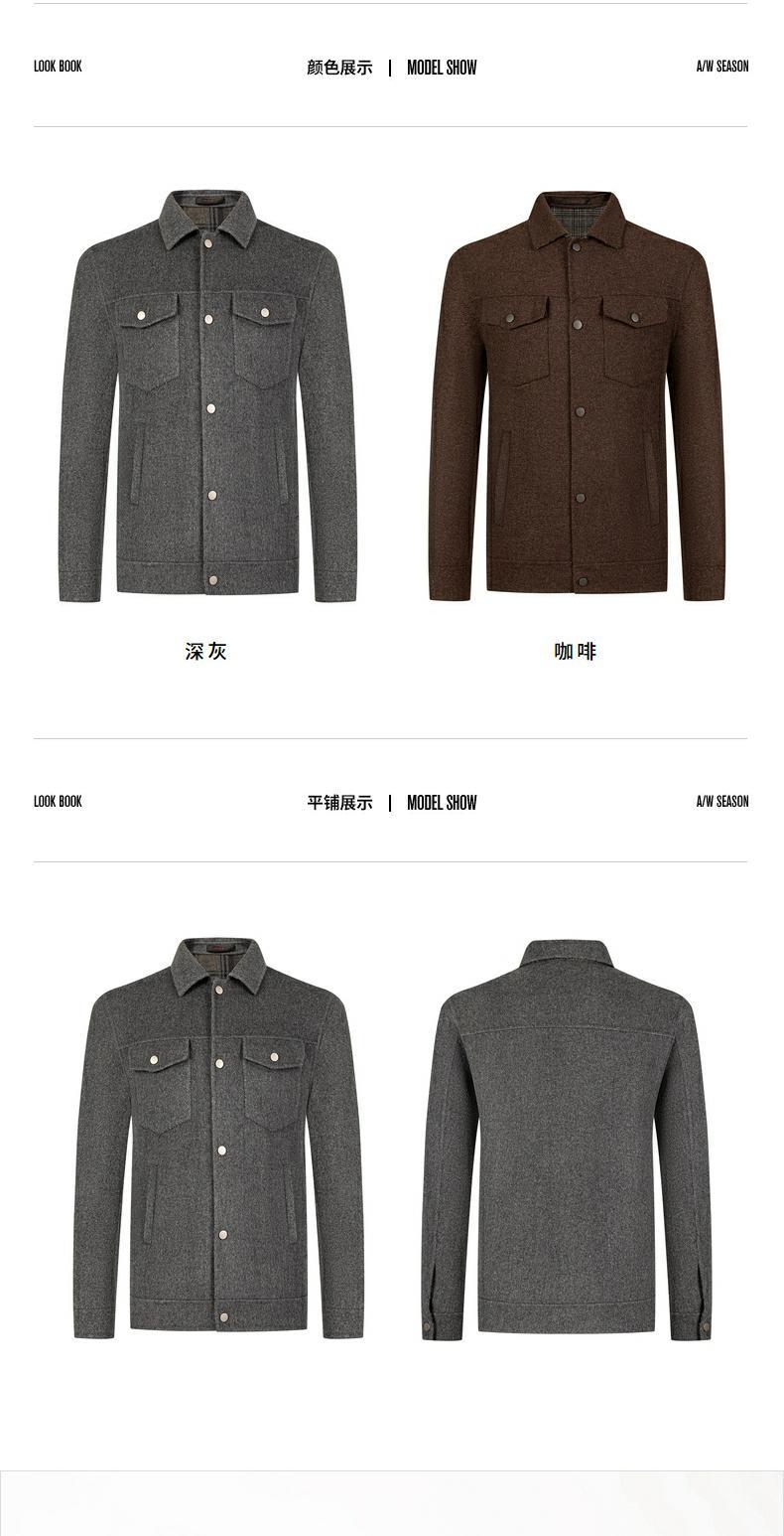 【特价】【含羊毛】柒牌夹克男秋冬新款时尚休闲工装风翻领毛呢外套夹克衫 121D70430