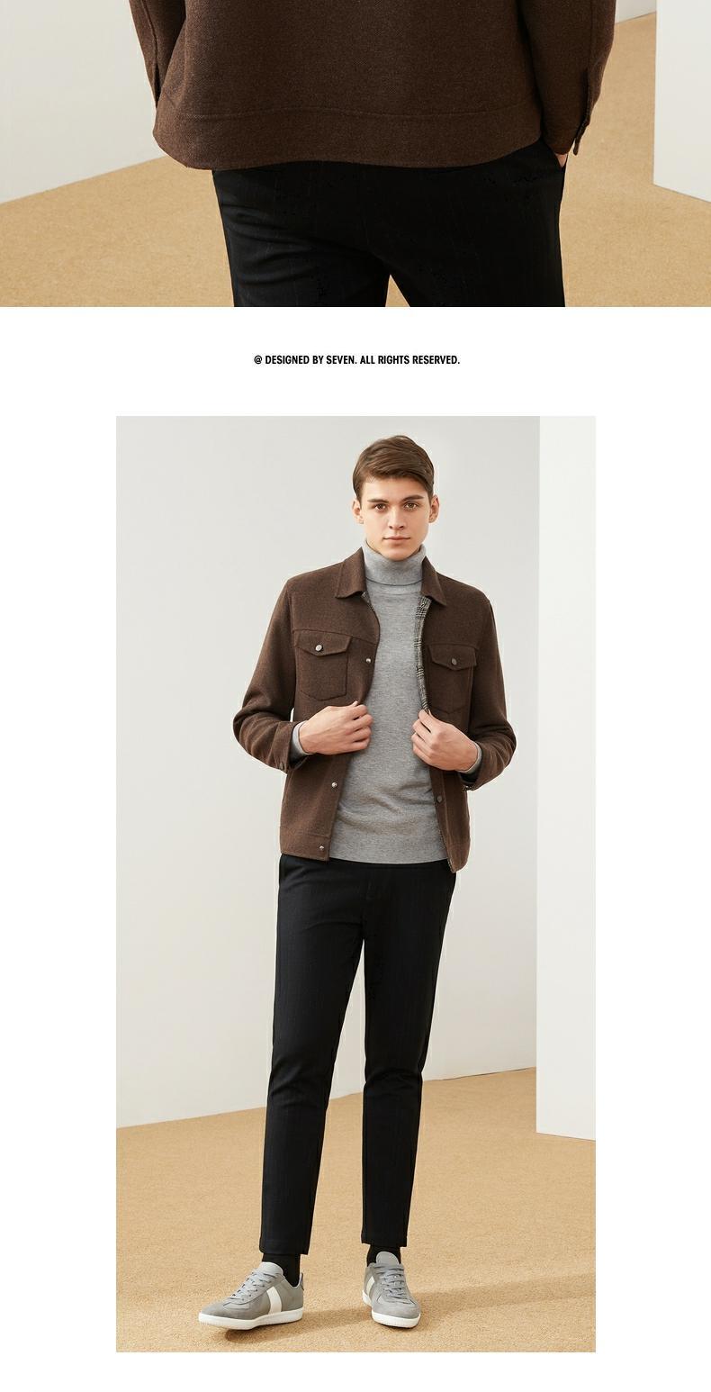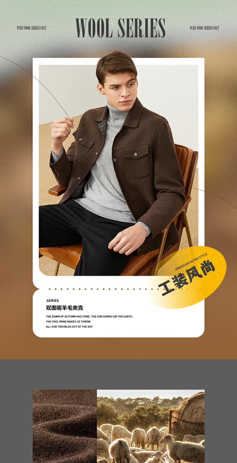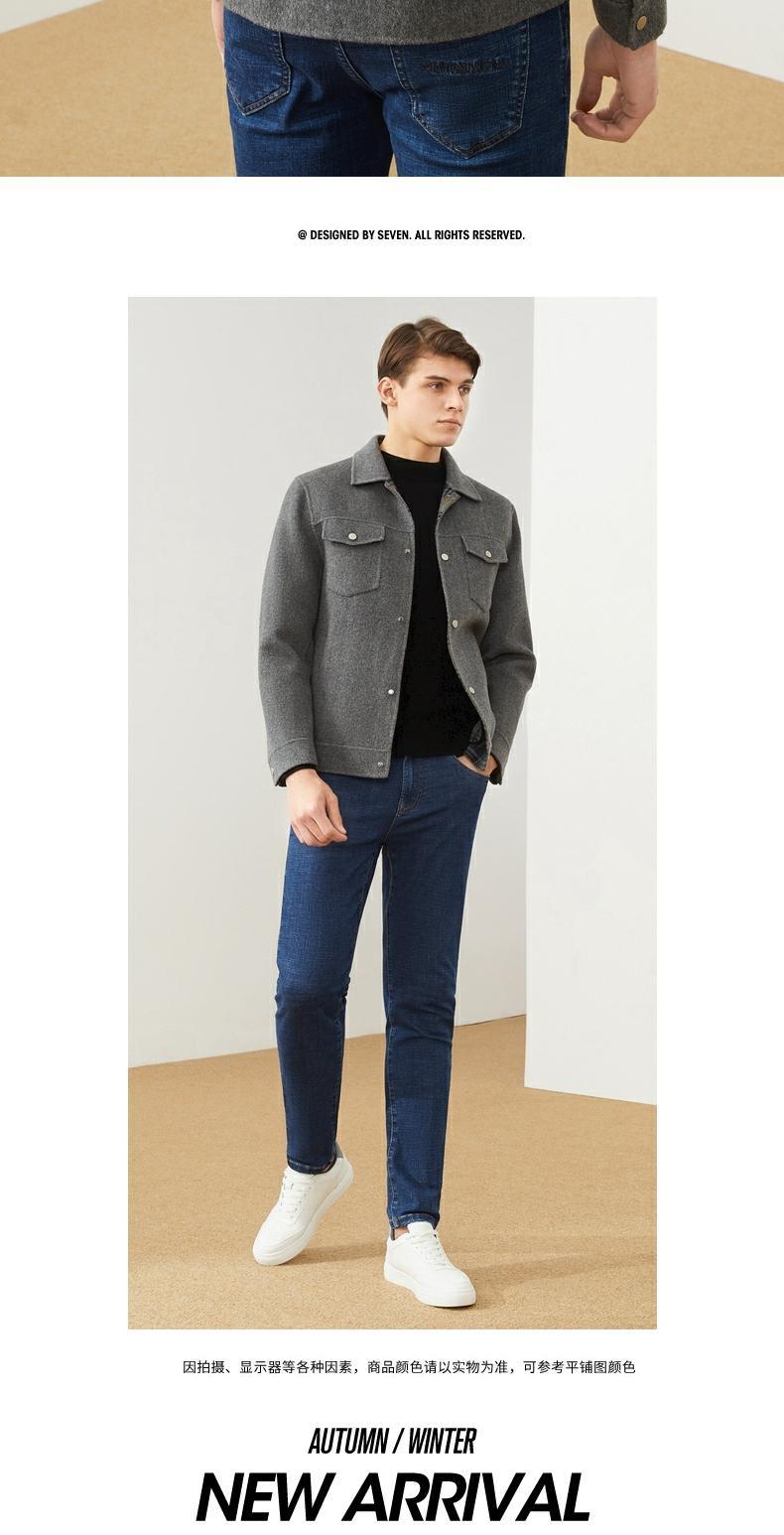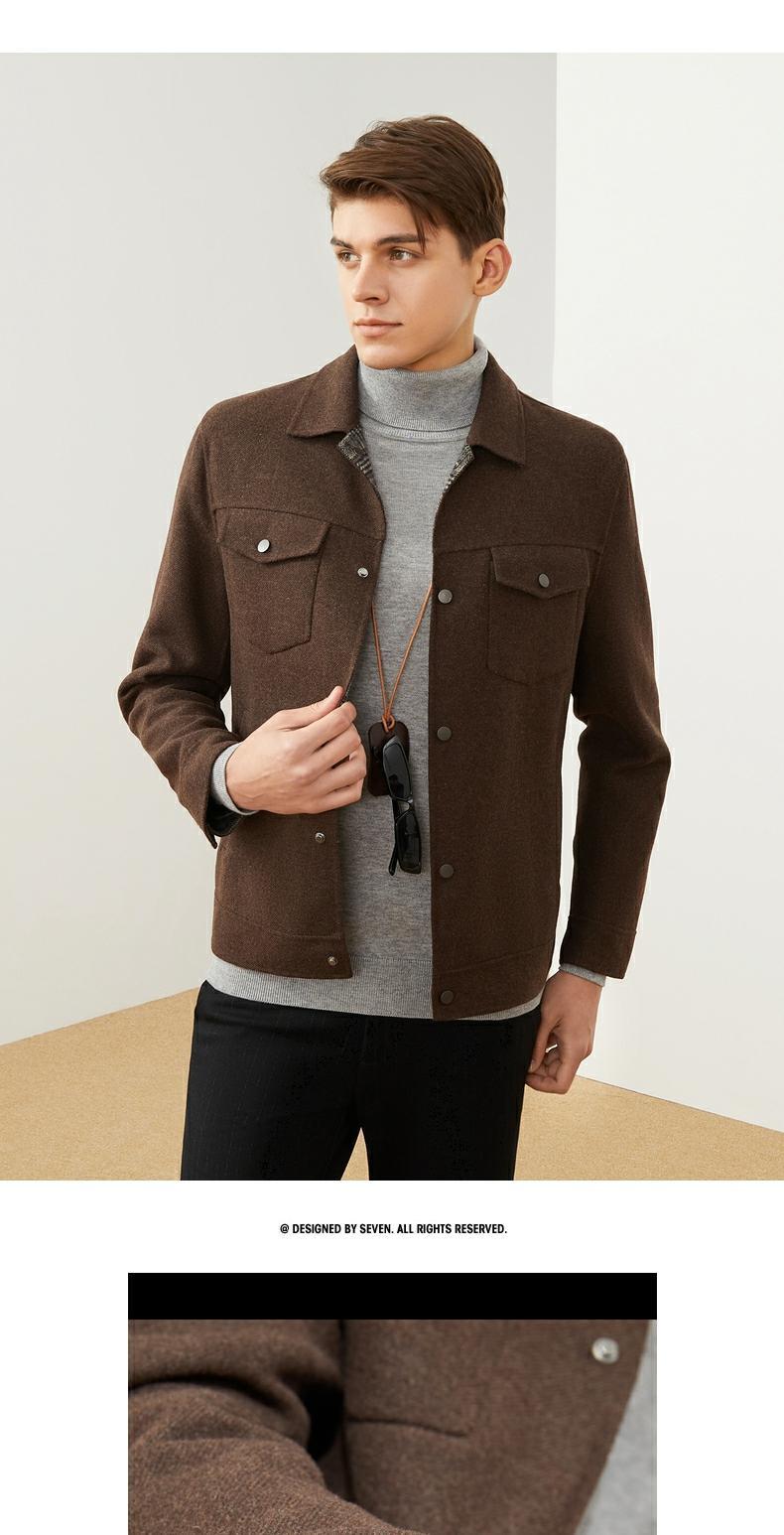 【特价】【含羊毛】柒牌夹克男秋冬新款时尚休闲工装风翻领毛呢外套夹克衫 121D70430