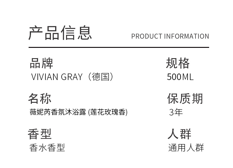【薇妮芮】莲花玫瑰香水沐浴露【德国原装进口】软化角质补水保湿水润顺滑男女士通用大容量家庭装500ml