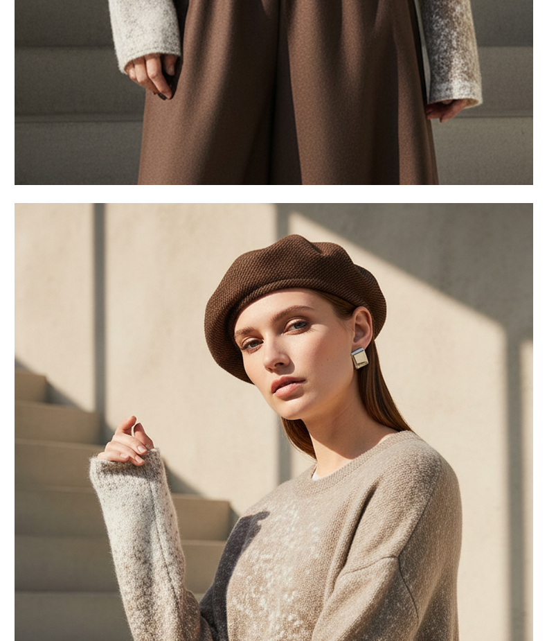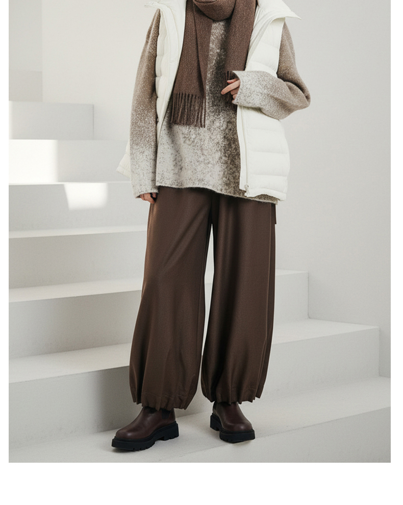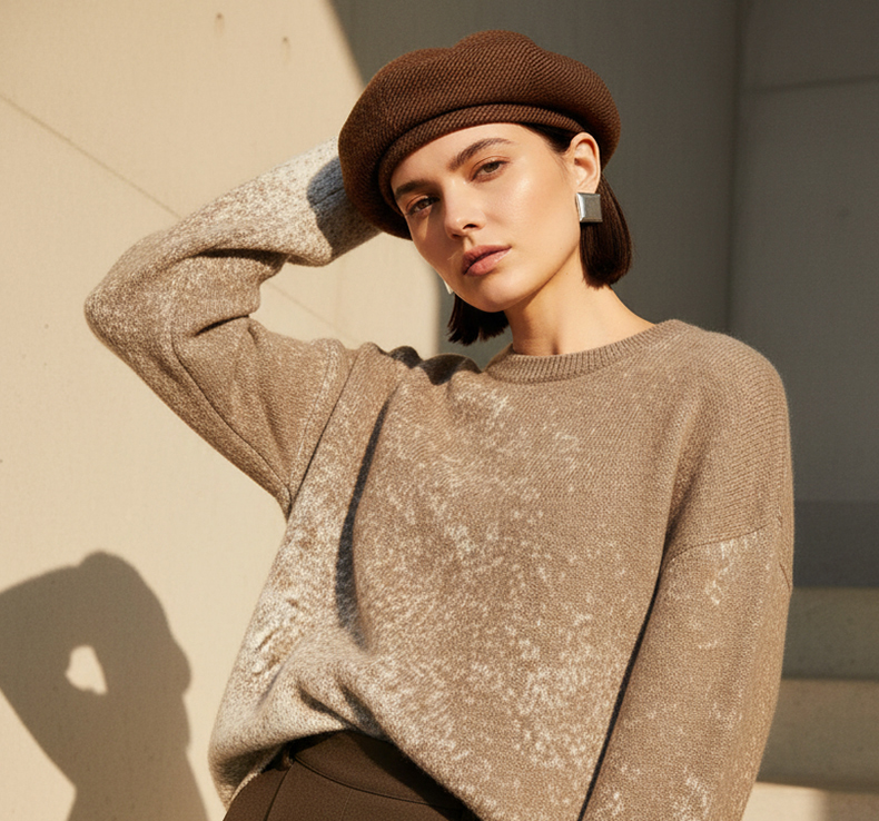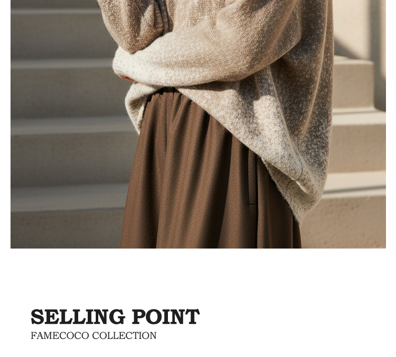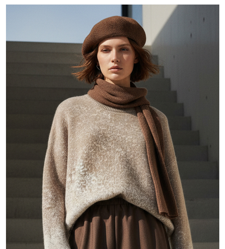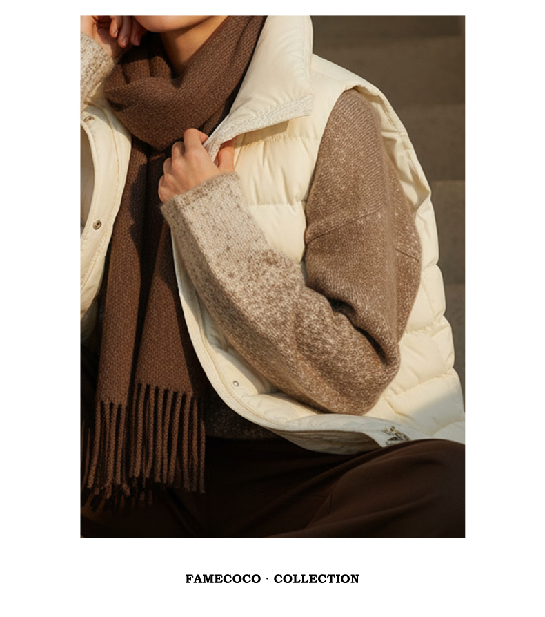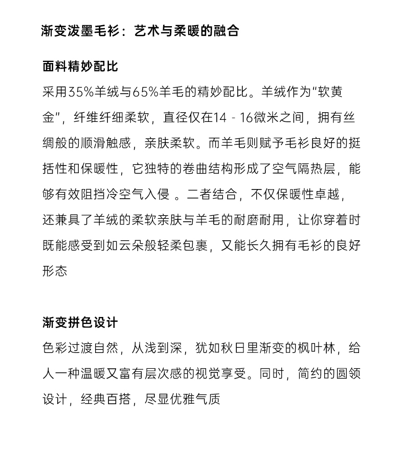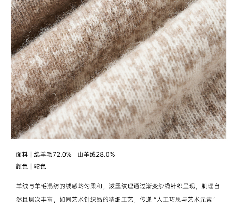 Famecoco范可儿时尚渐变套头毛衫高级山羊绒宽松打底衫FAD8DB124