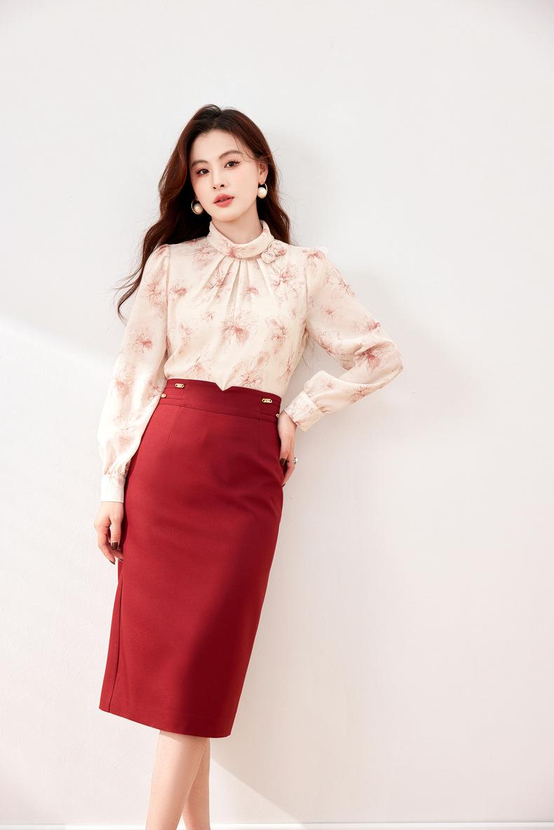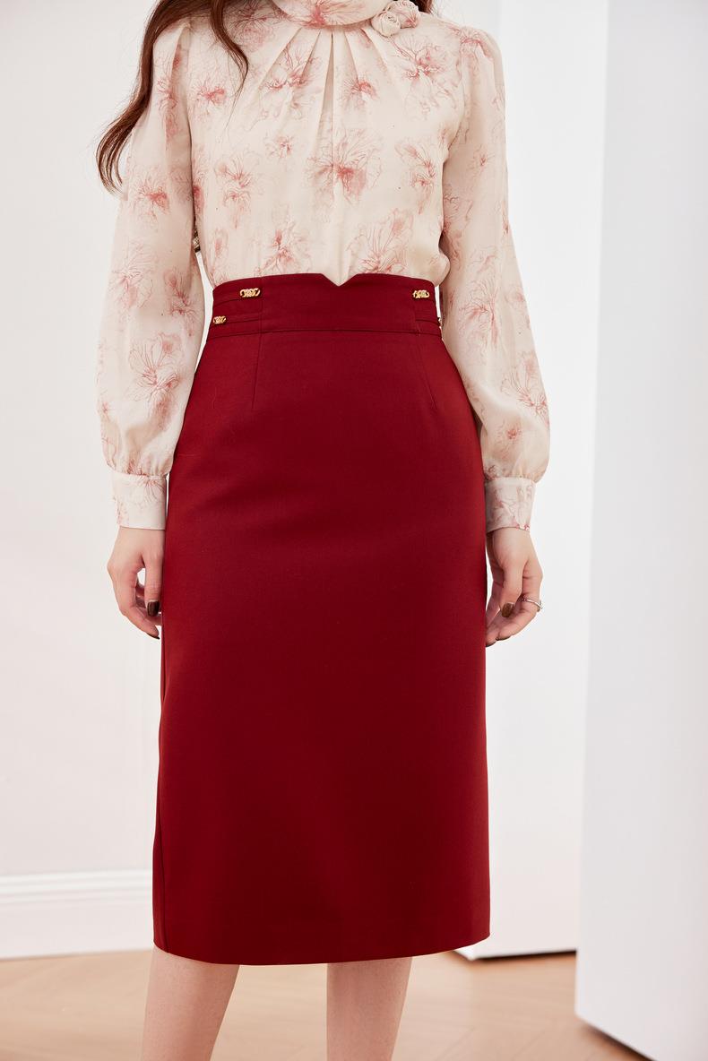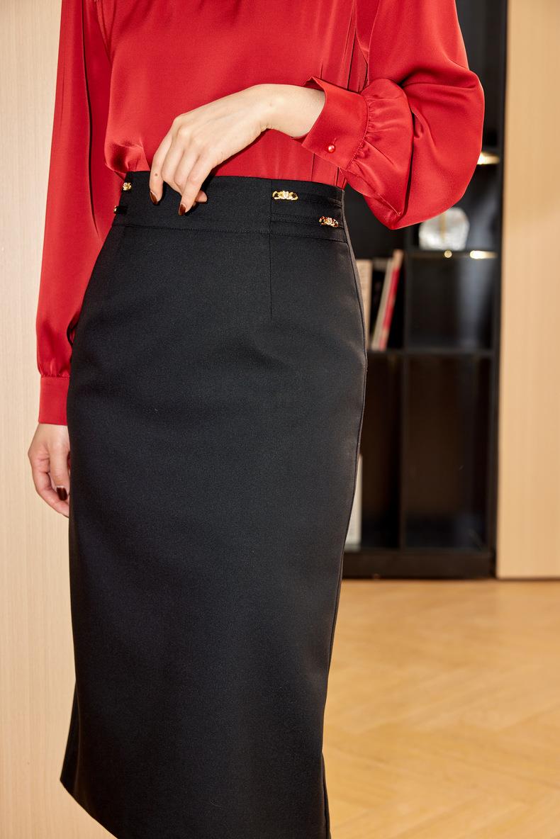 开叉半身裙2024春装新款高腰显瘦中长款一步裙包臀裙6506