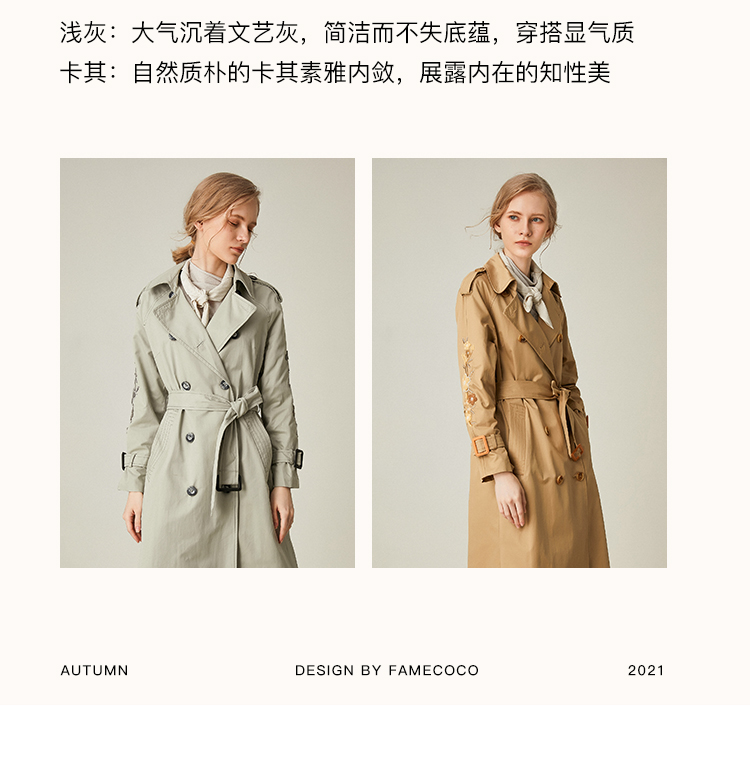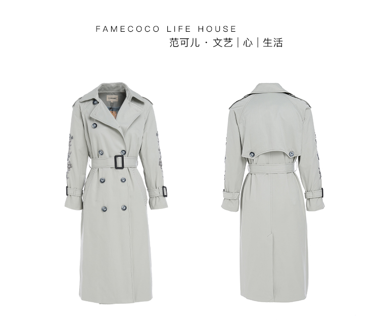 famecoco范可儿风衣大衣气质中长款外套F191AA005