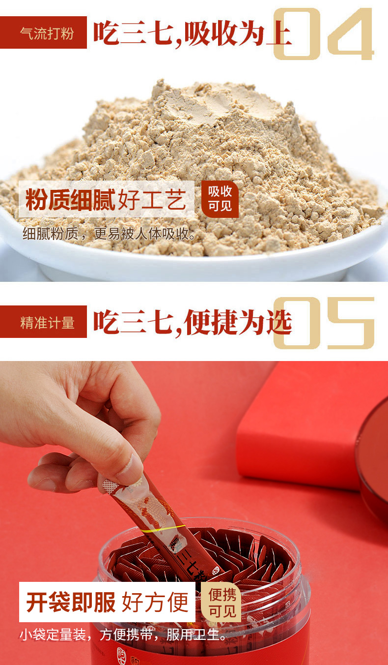 【官方正品】云南白药豹七熟三七粉2g*40袋正宗文山三七头打粉蒸制工艺血虚补血
