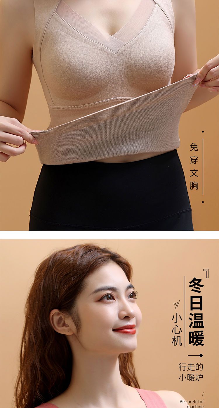 【爆款超低价预售 急单慎拍】德绒发热秋冬季磨毛无痕打底衫加绒加厚保暖女士内衣带胸垫保暖衣