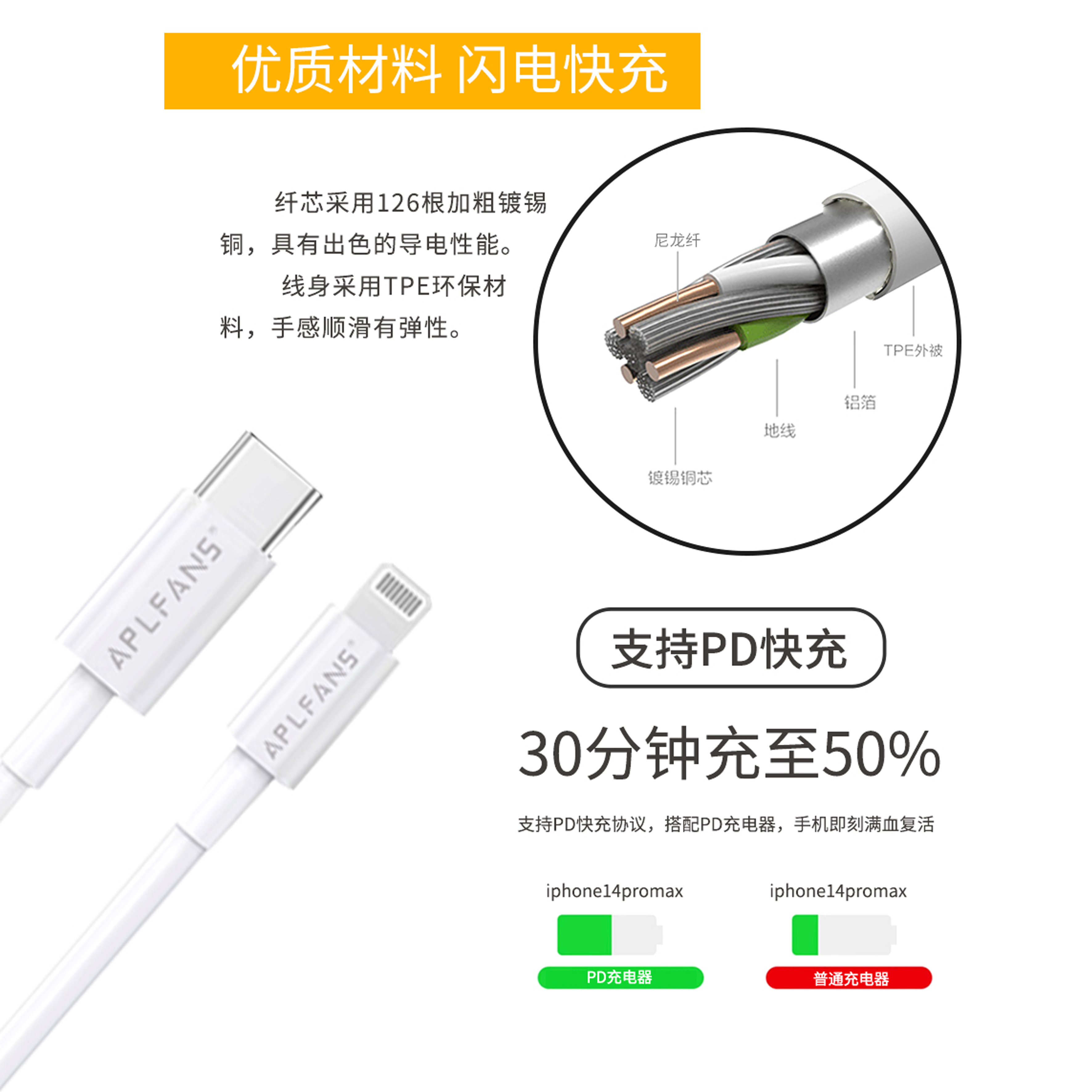 注:此线为苹果专用,请勿使用安卓闪充头与之搭配,容易造成线的损坏!