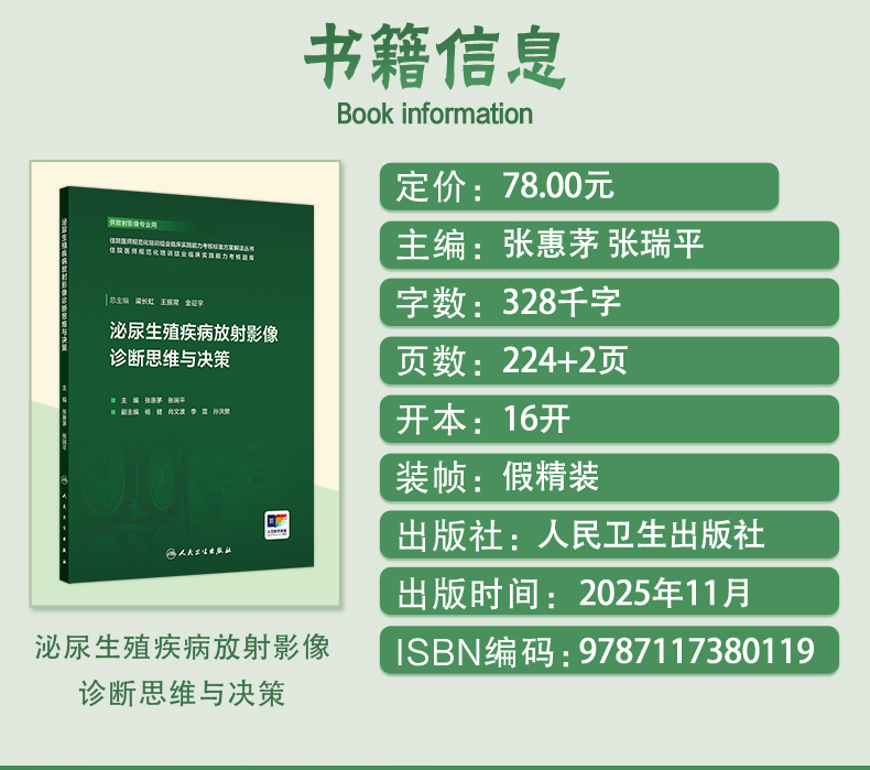 泌尿生殖疾病放射影像诊断思维与决策 住院医师规范化培训结业临床实践能力考核题库 张惠茅 张瑞平 主编 放射医学 人民卫生出版社