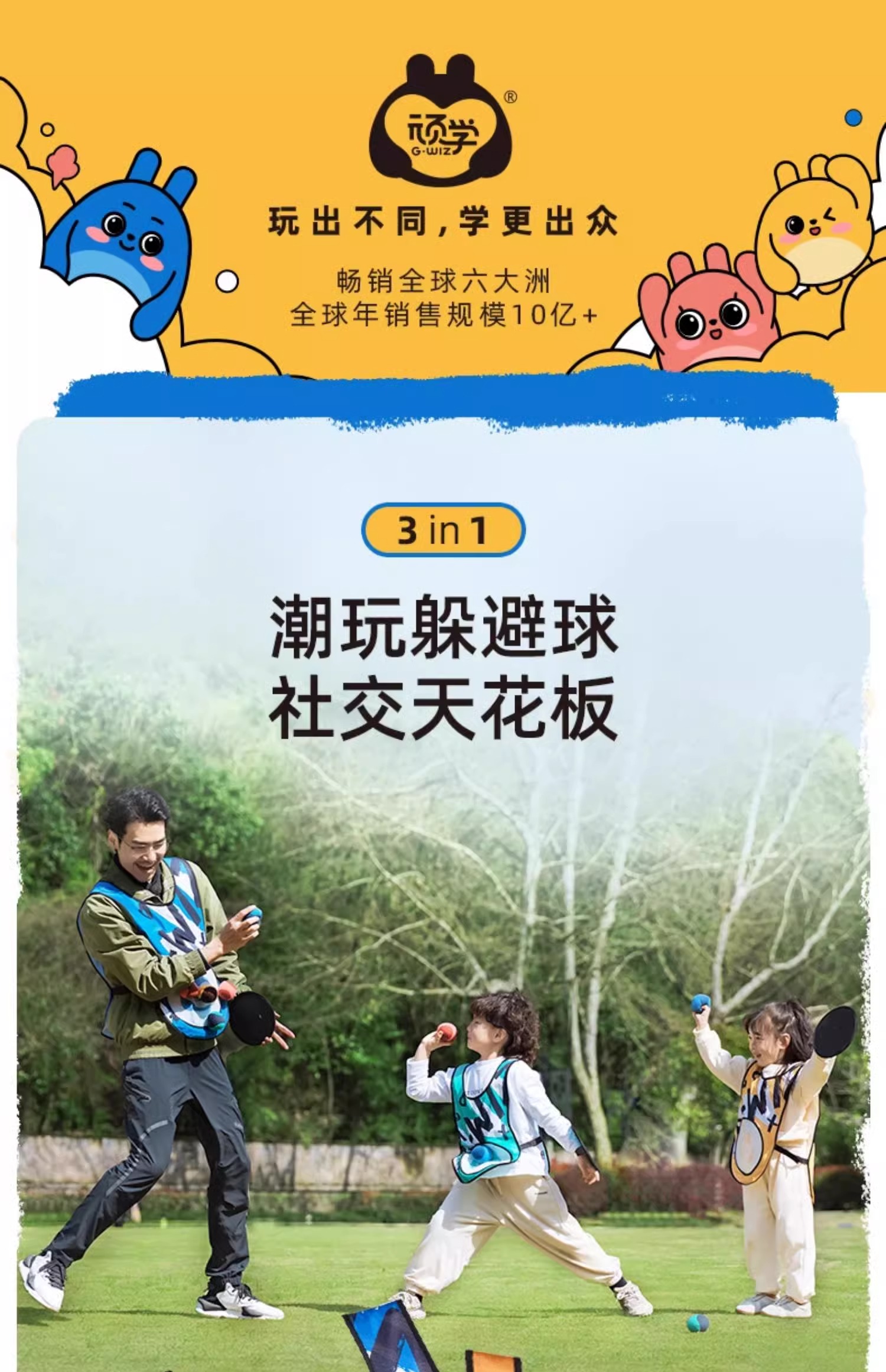 顽学GWIZ儿童躲避球粘粘球户外运动亲子互动玩具