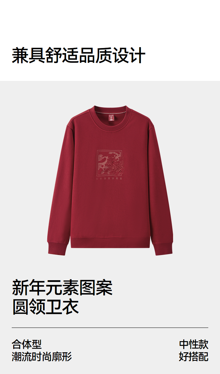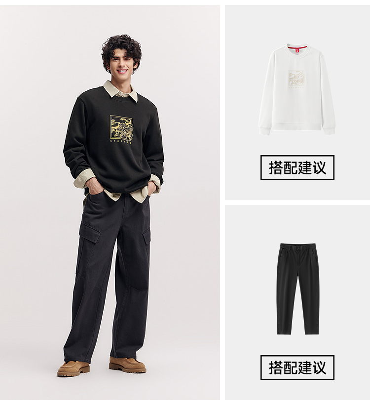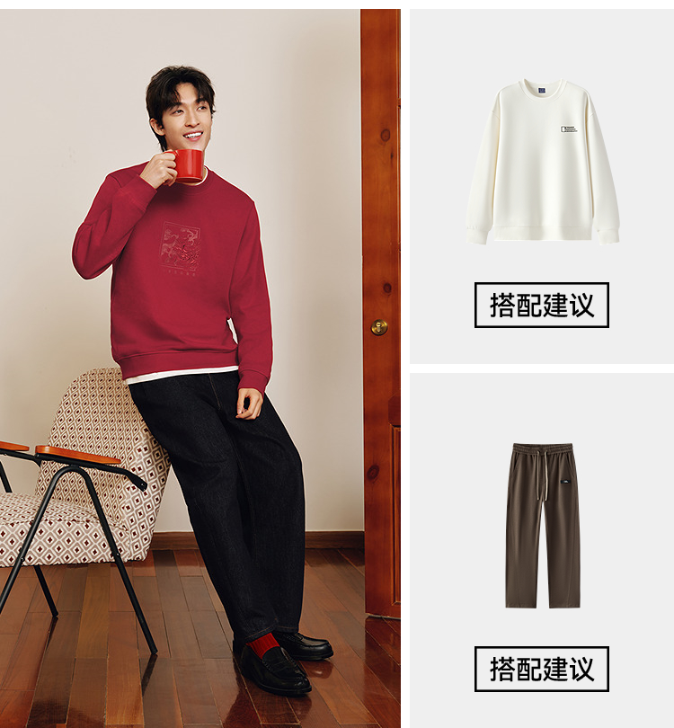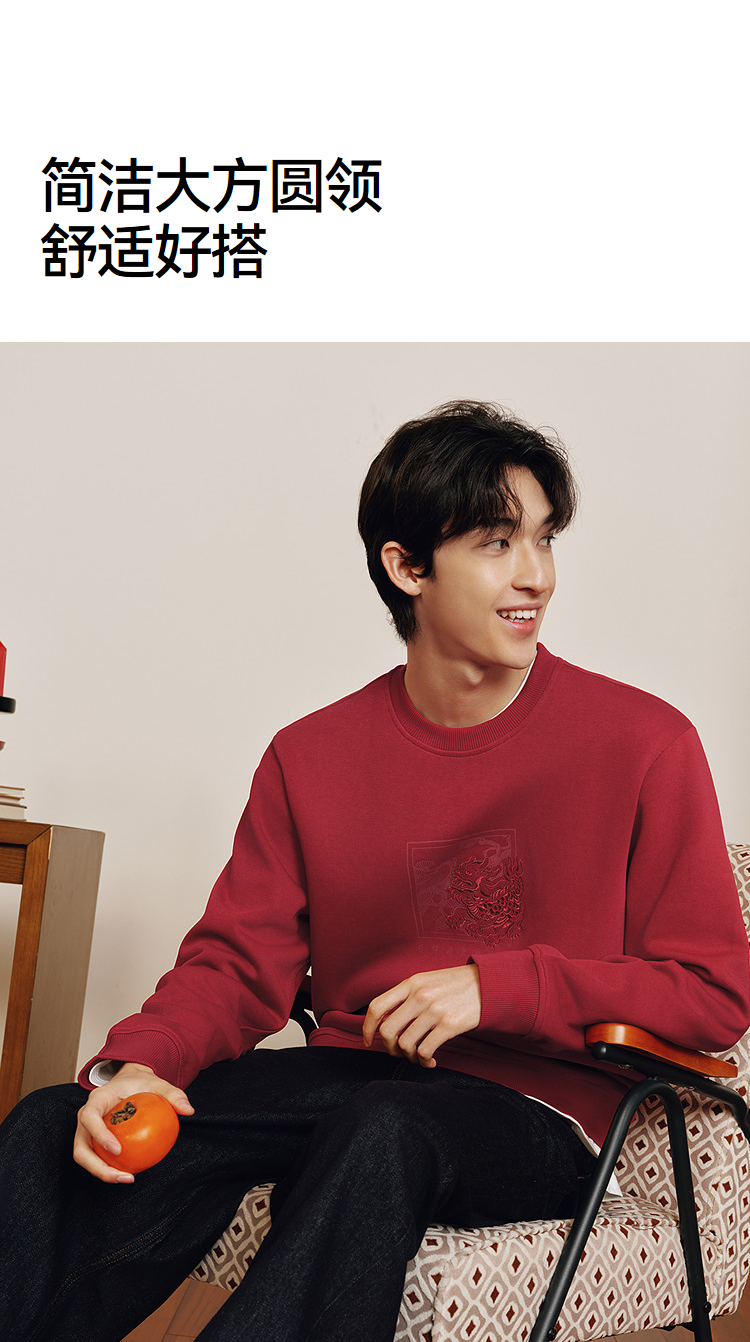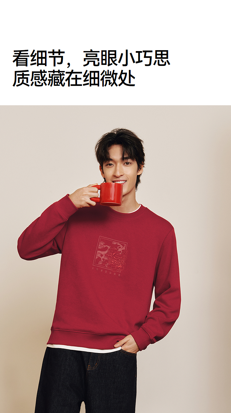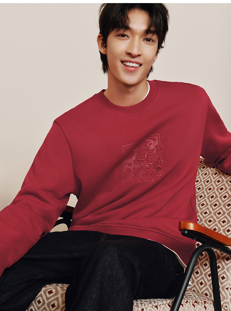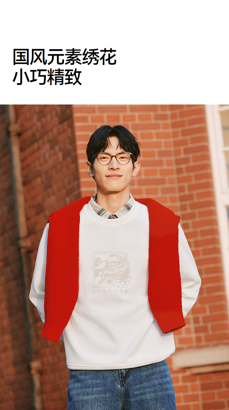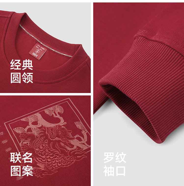 森马张仁华非遗联名卫衣男春国风图案经典圆领廓形情侣装简洁百搭