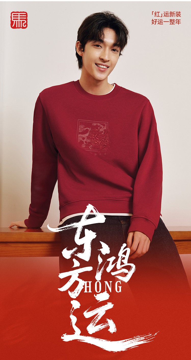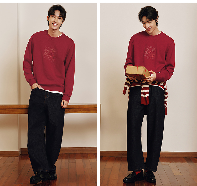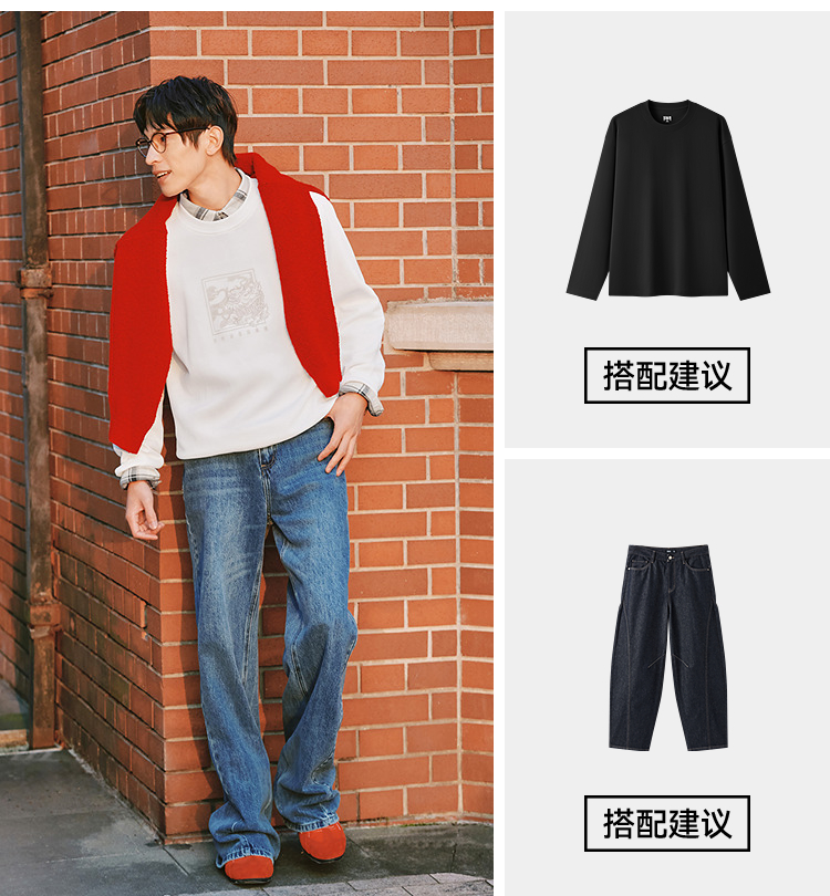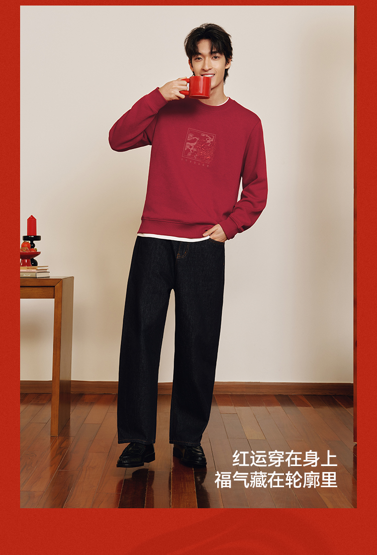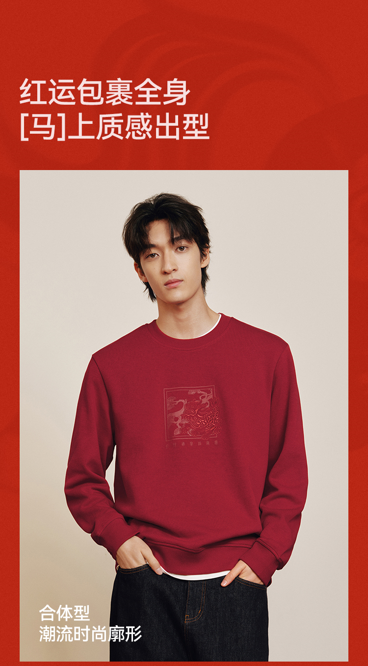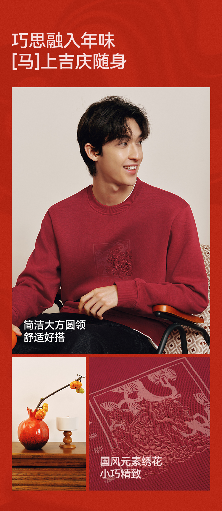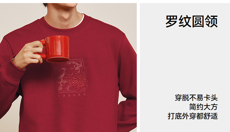 森马张仁华非遗联名卫衣男春国风图案经典圆领廓形情侣装简洁百搭