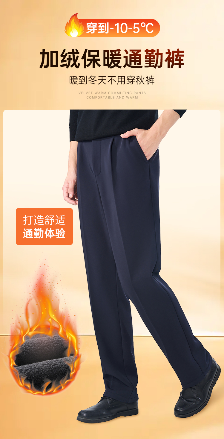 【蜀黍家加绒通勤裤W1】四面弹力商务通勤西裤男女修身保暖直筒长裤