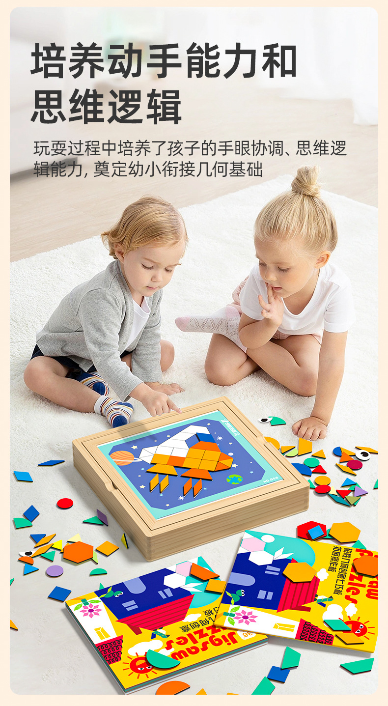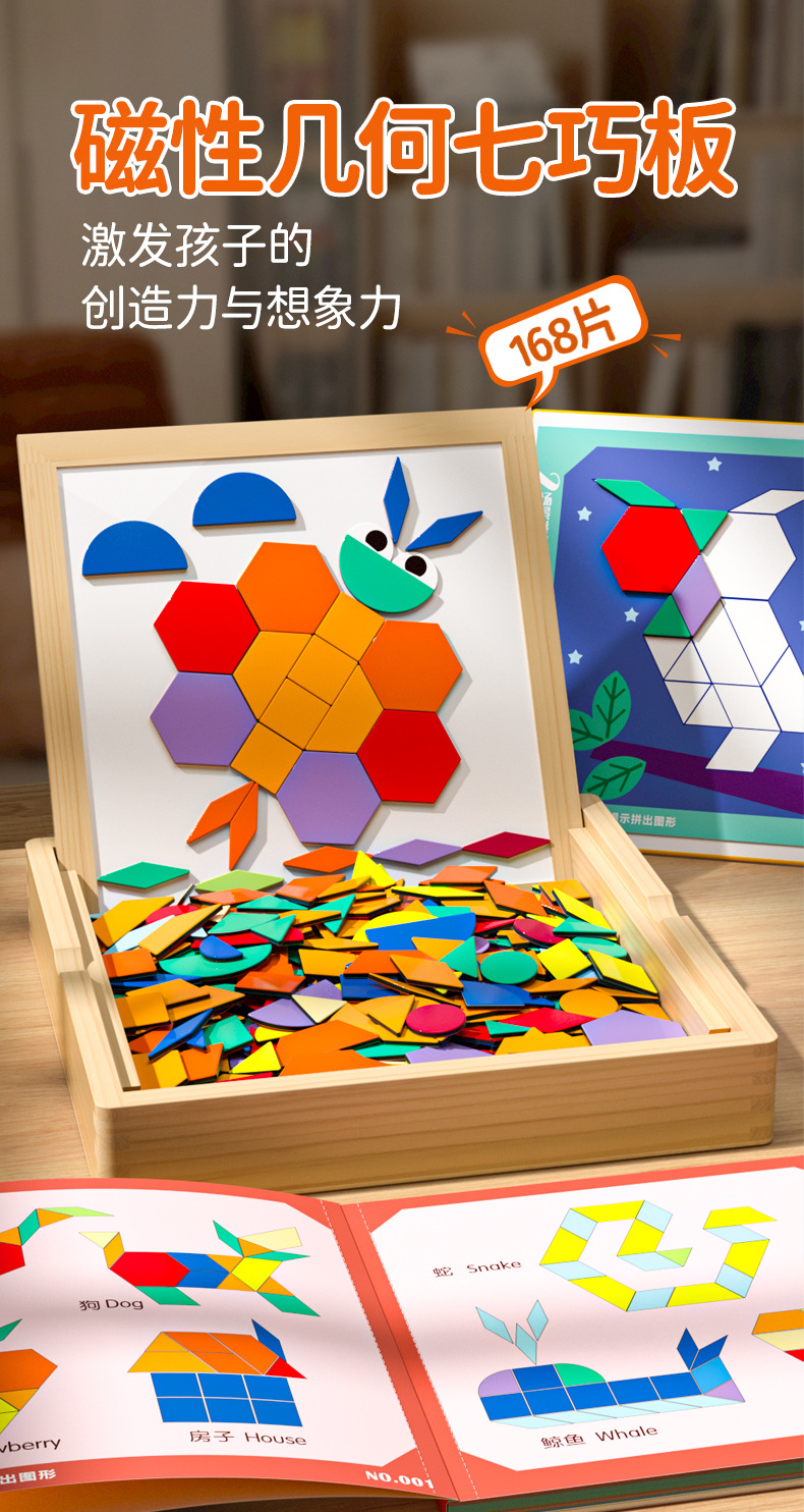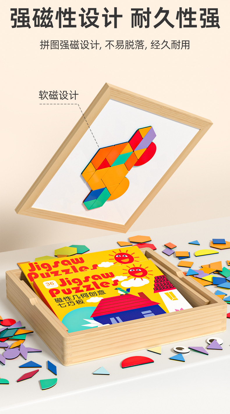 【培养动手能力和思维能力】磁力拼图七巧板几何积木幼儿儿童宝宝益智力玩具